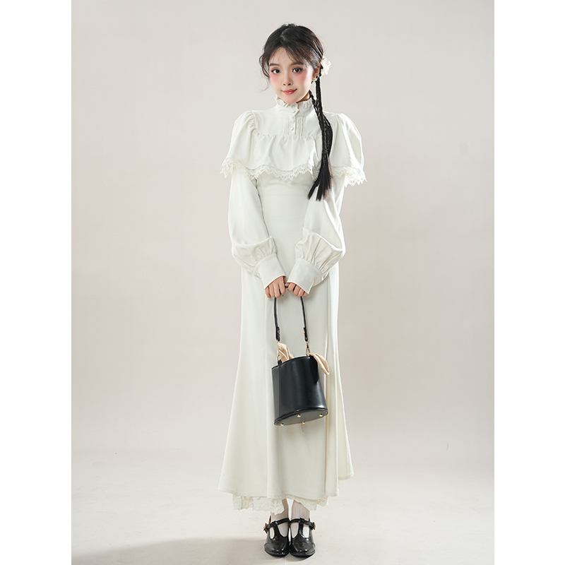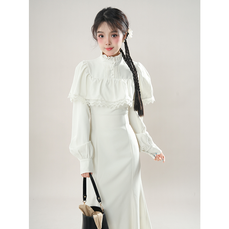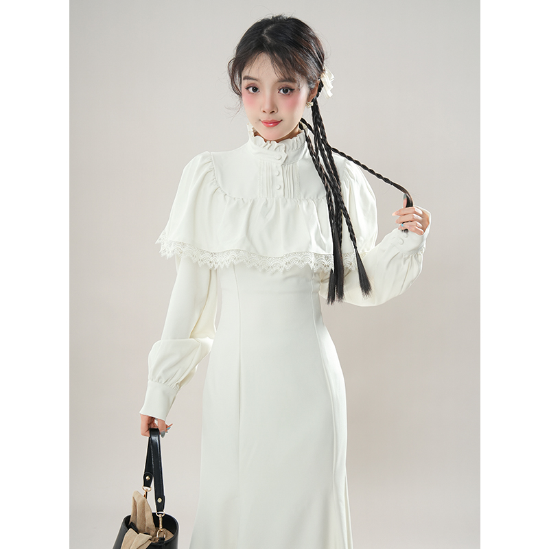 法式富家千金斗篷连衣裙女春季2025新款高级感收腰显瘦鱼尾长裙子
