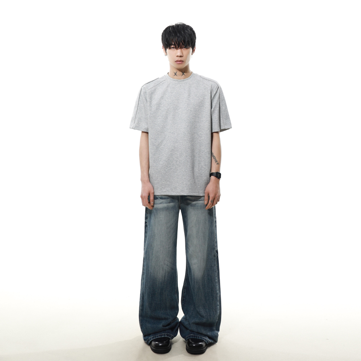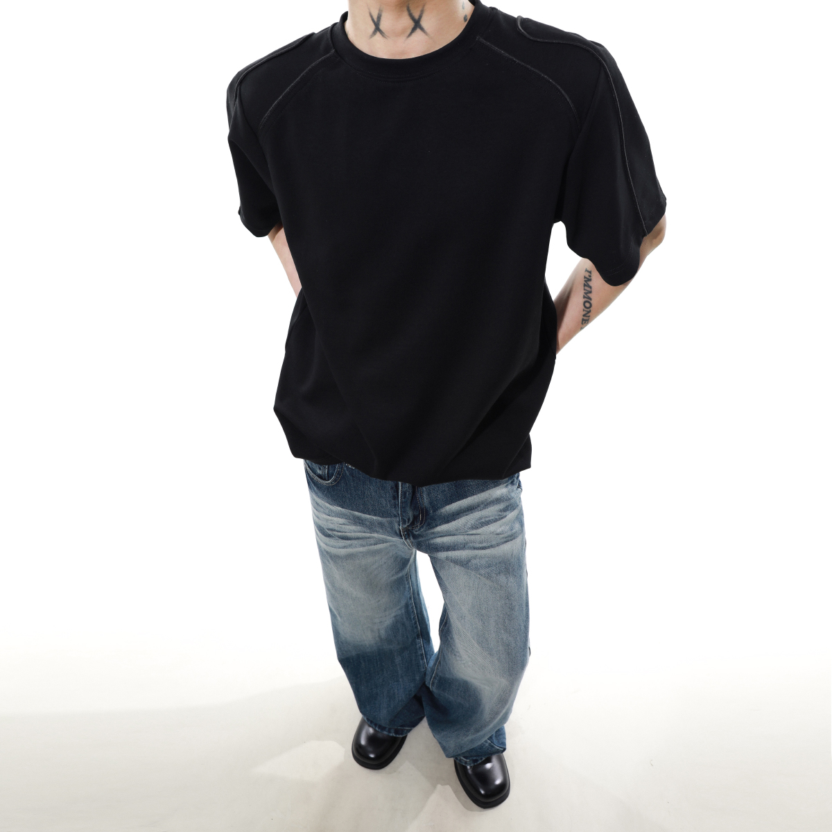 MRNEARLY美式复古重磅解构短袖T恤男夏季新款百搭宽松纯色上衣潮