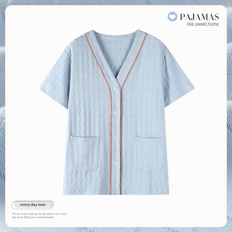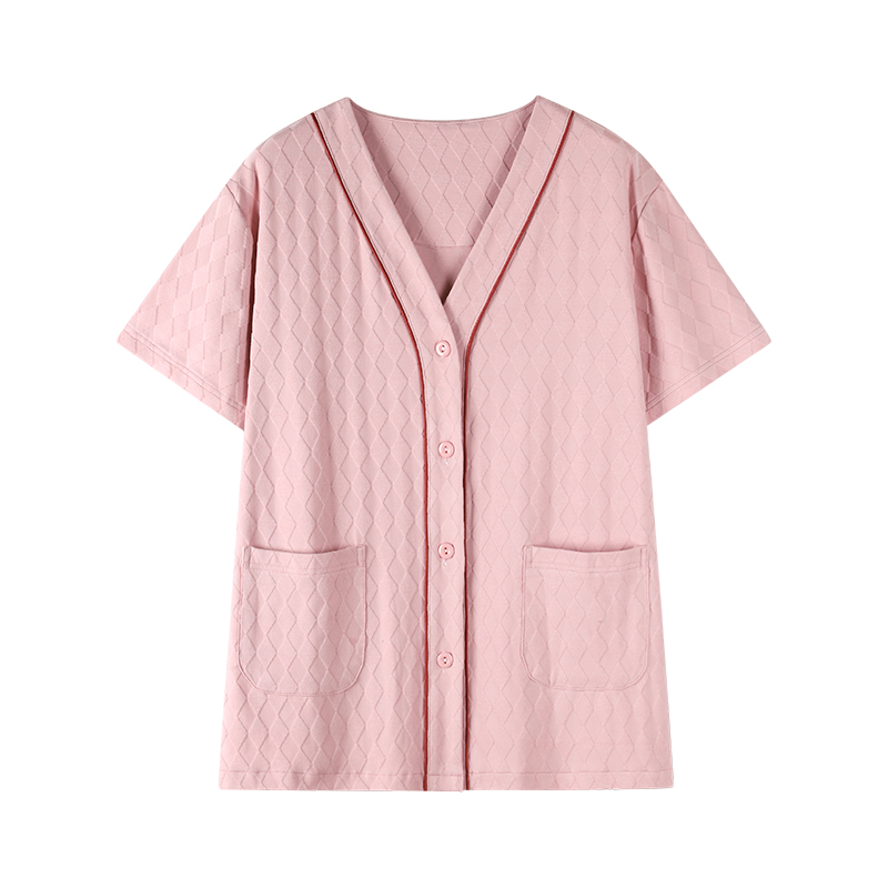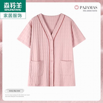 单件女睡衣上衣夏季纯棉短袖简约条纹开衫女士可外出家居服全棉薄