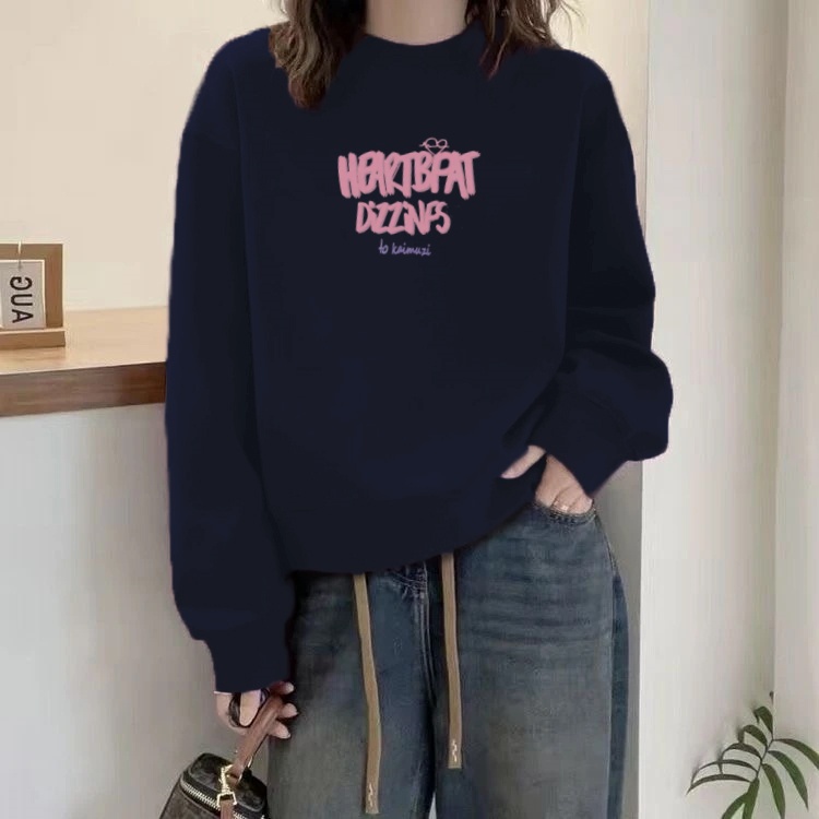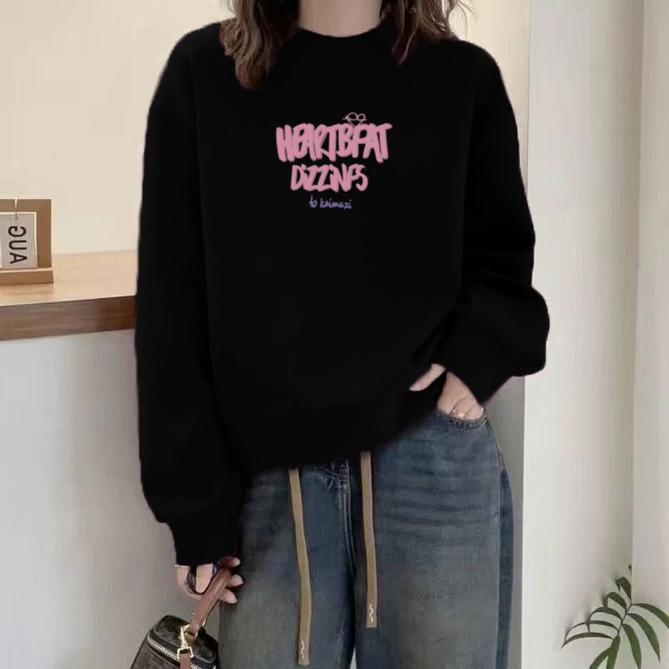 加绒卫衣女秋冬装加厚圆领套头长袖打底衫显瘦宽松休闲上衣女外穿