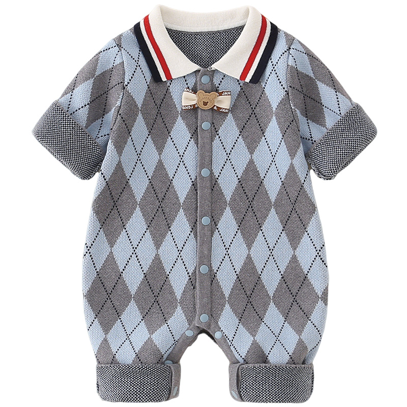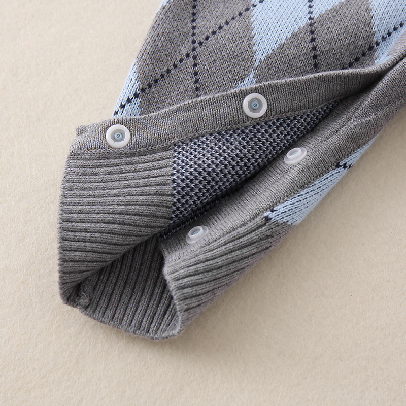 婴儿衣服纯棉针织连体毛衣秋冬男宝宝英伦风满月帅气爬服绅士套装