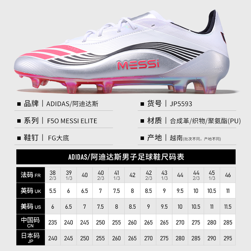 Adidas阿迪达斯F50 ELITE梅西高端长钉天然草低帮FG足球鞋JP5593