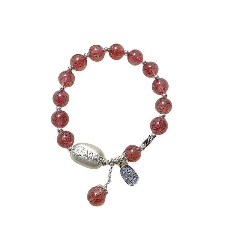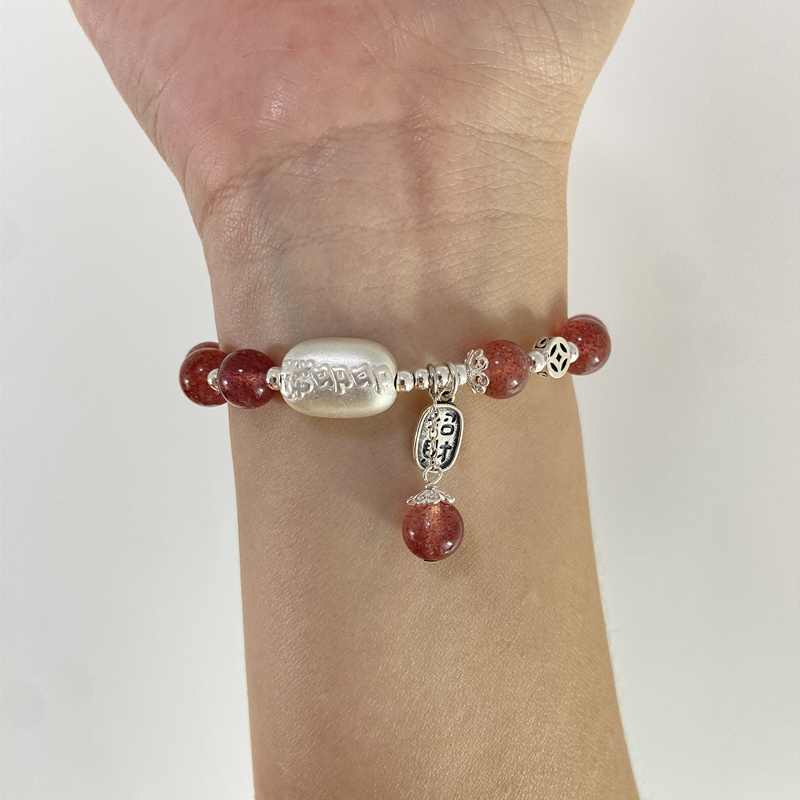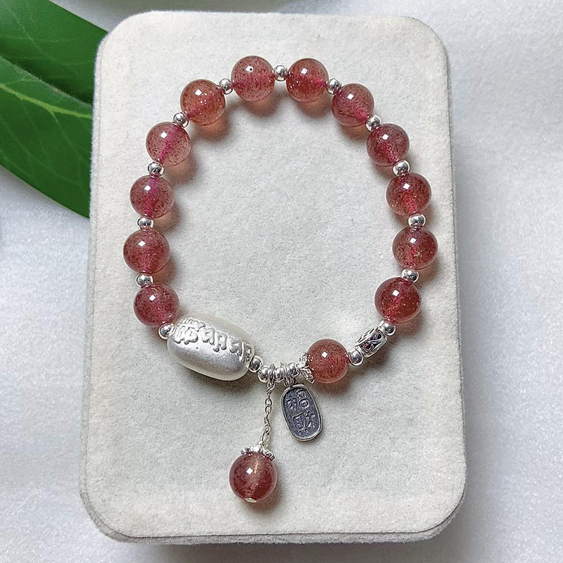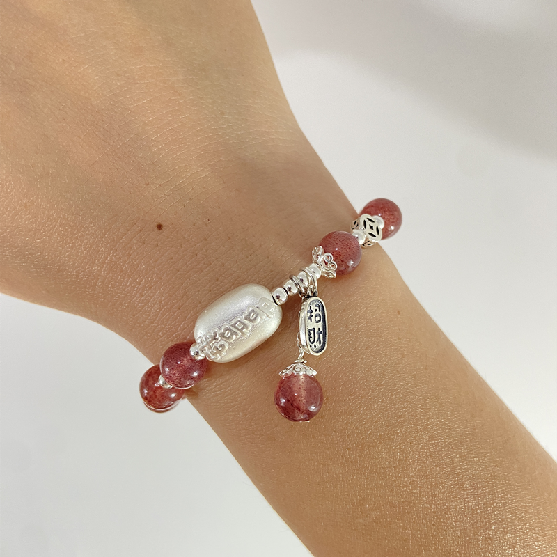 天然草莓晶粉色水晶纯银钱多多手链女轻奢精致手饰闺蜜手串礼物