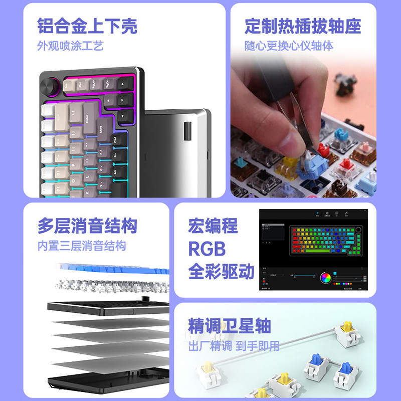 75铝坨坨机械键盘套件有线RGB热插拔客制化金属游戏电竞女生办公