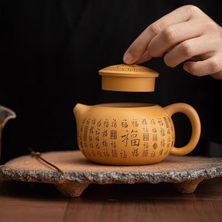 黄金段泥百福紫砂壶凤鸣壶纯手工