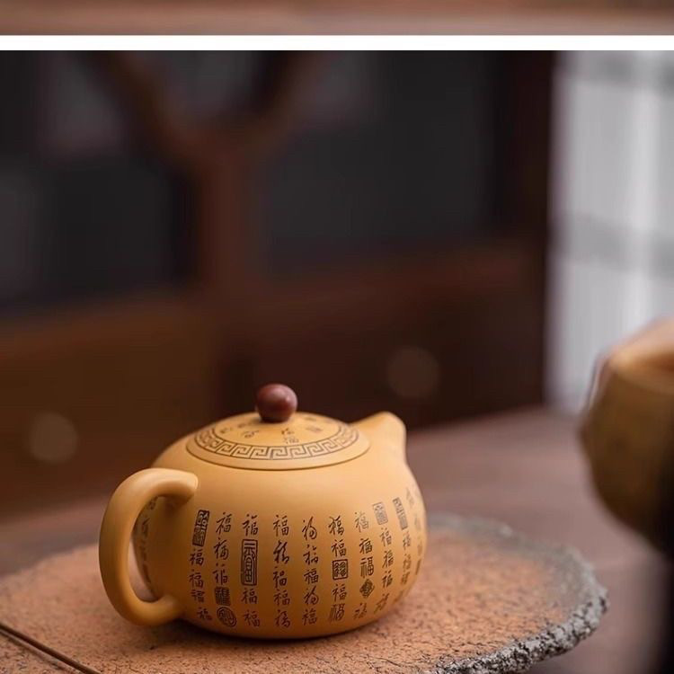 黄金段泥百福紫砂壶凤鸣壶原矿泥西施壶纯手工一壶两杯功夫泡茶器