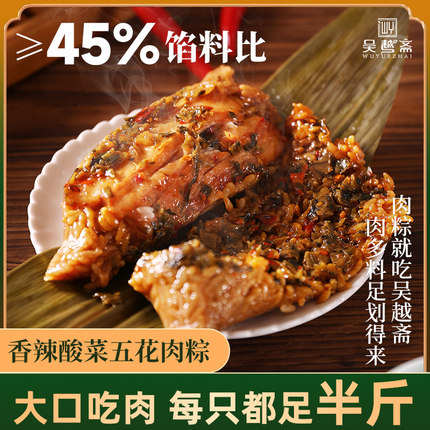吴越斋香辣酸菜五花肉粽子衢州风味新鲜手工包制粽子早八速食早餐