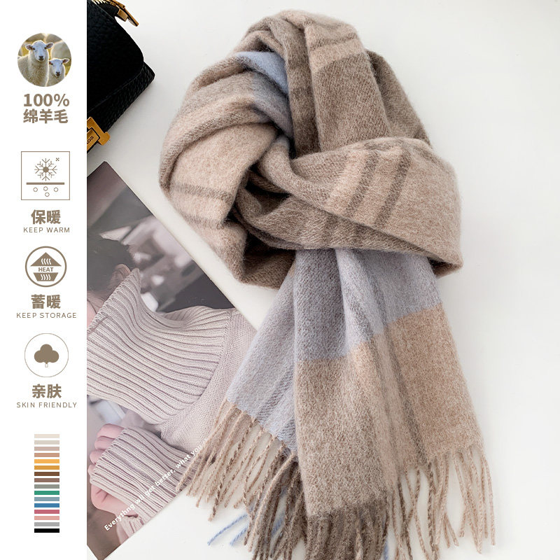 惟嫒秋冬羊毛围巾100%纯羊毛