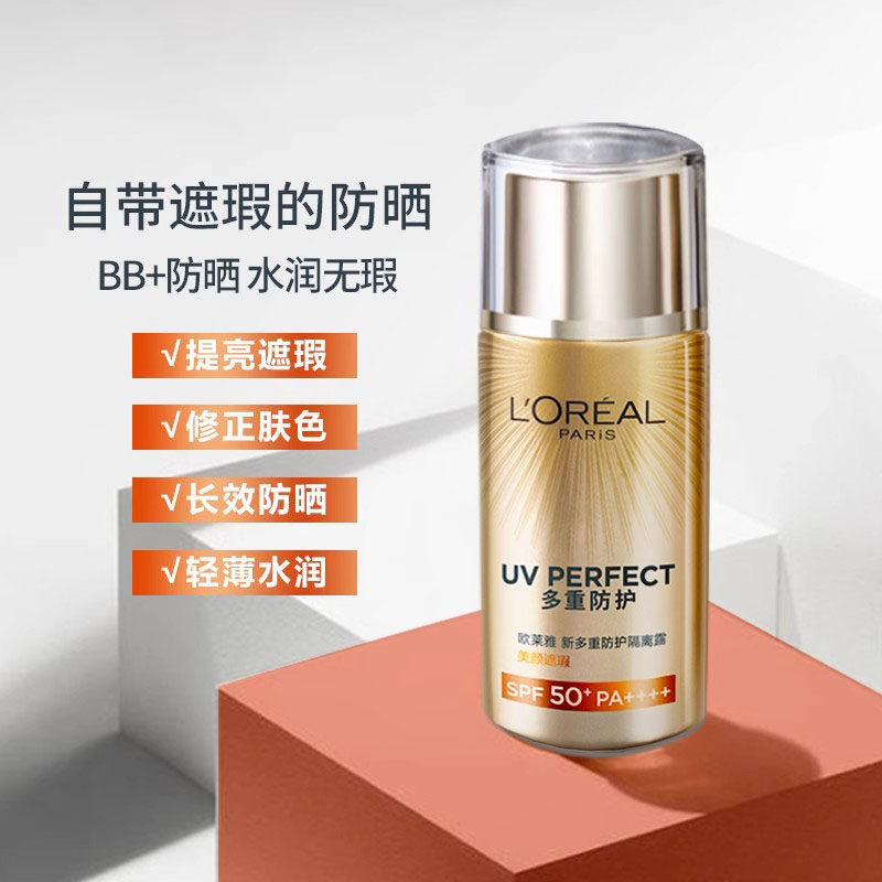 欧莱雅匀净防晒霜全新多重防护美颜遮瑕防晒隔离露正品官方旗舰店