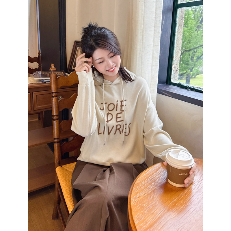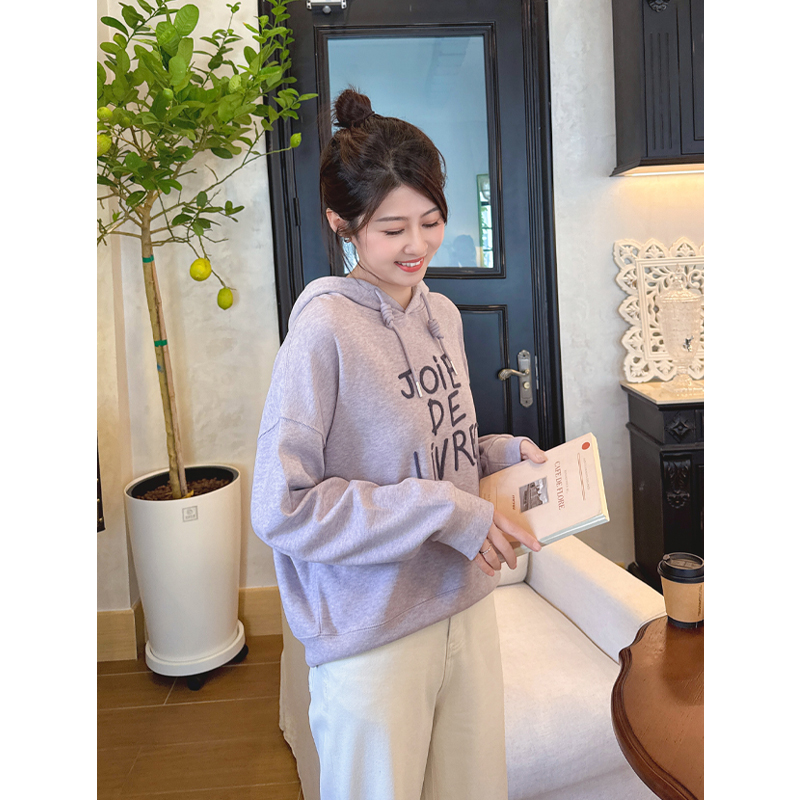 紫璐莱蓝莓拿铁~温柔气质绒感字母绣花宽松显瘦连帽卫衣上衣女71X