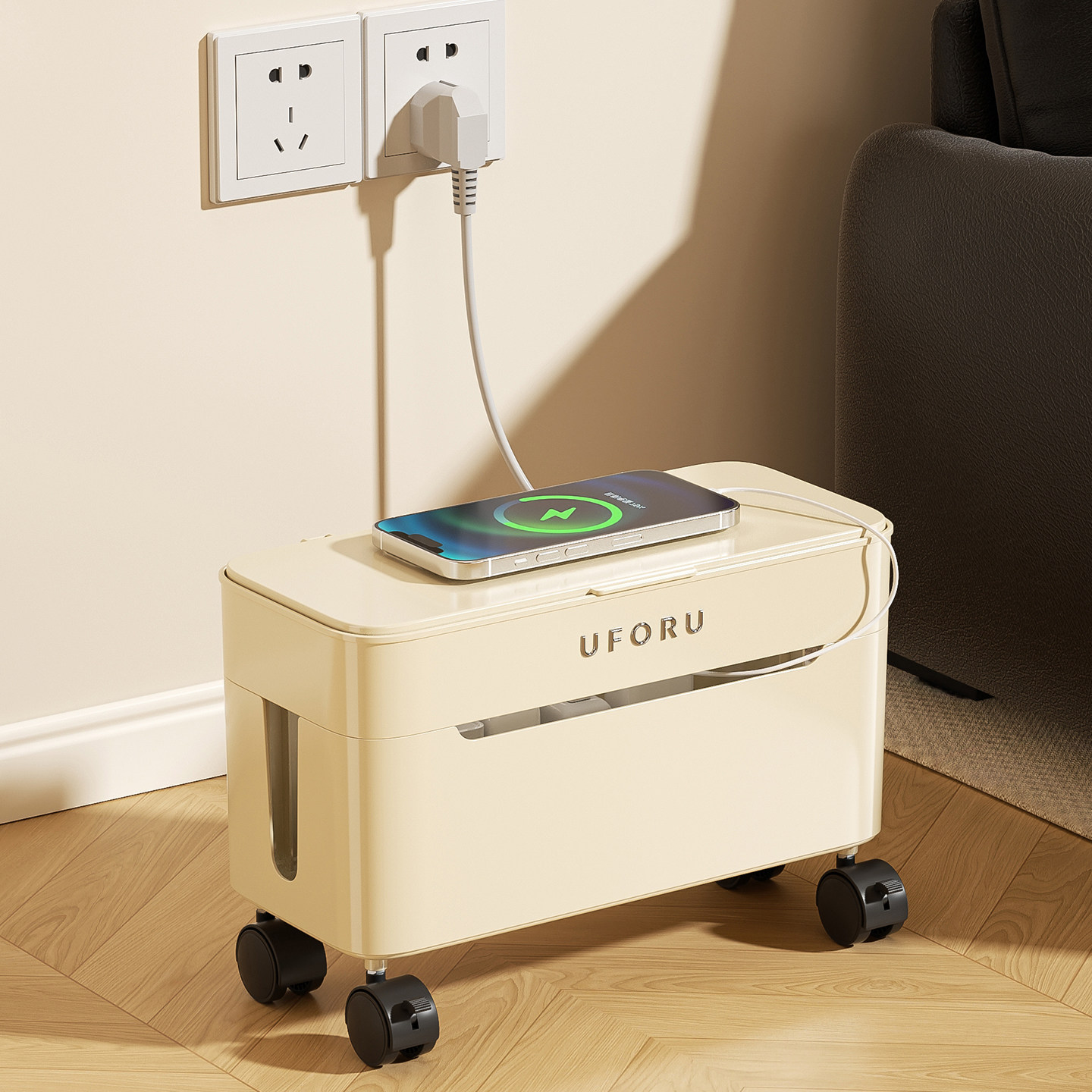 插线板收纳盒带轮手机充电器电源数据线理线器防尘插排插座固定器
