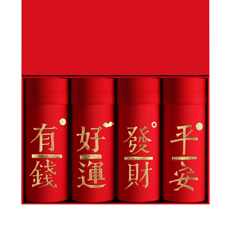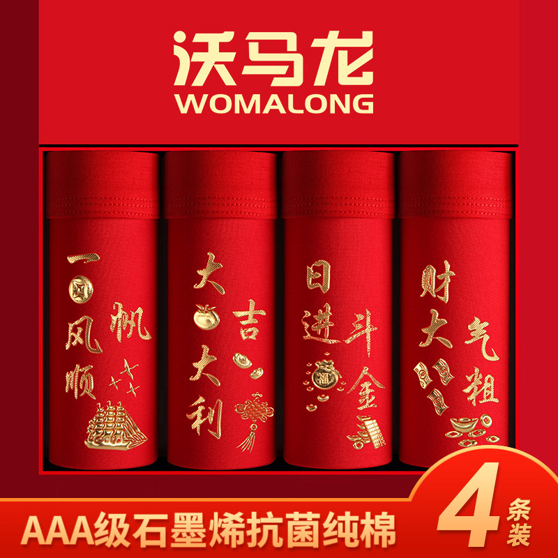 4条盒装大红男士纯棉平角内裤结婚本命年鸿运四角内裤