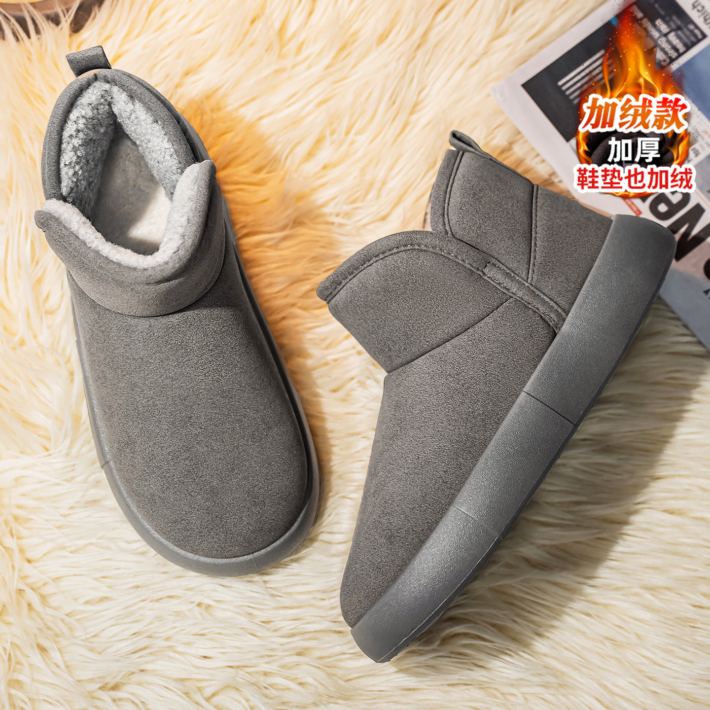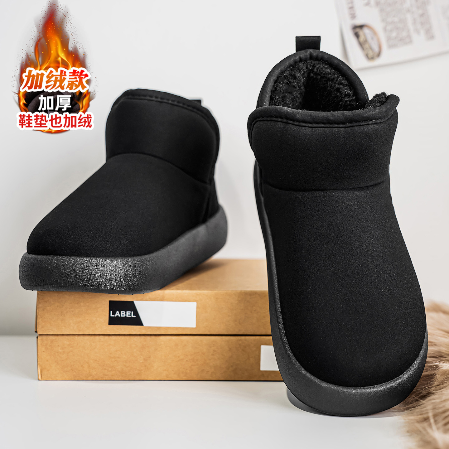 雪地靴男鞋冬季加绒加厚保暖一脚蹬防滑软底老年人老北京爸爸棉鞋