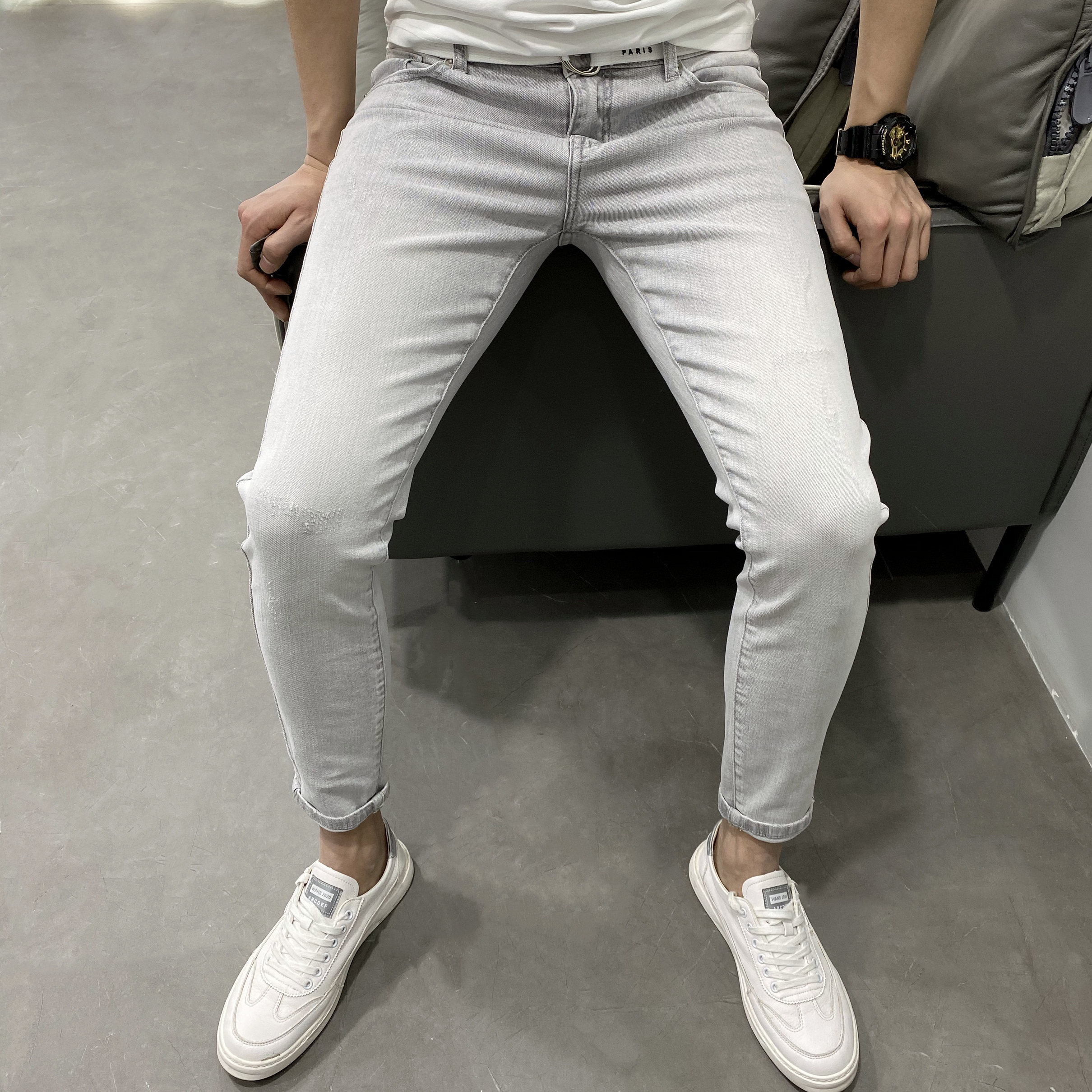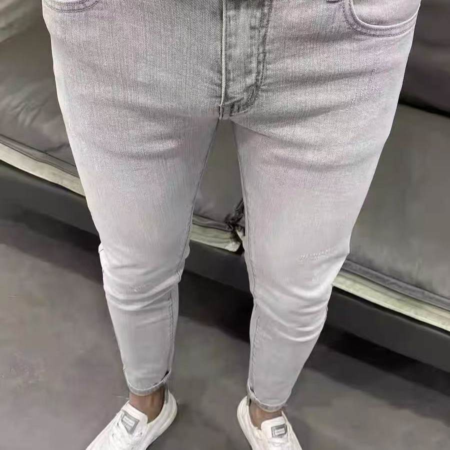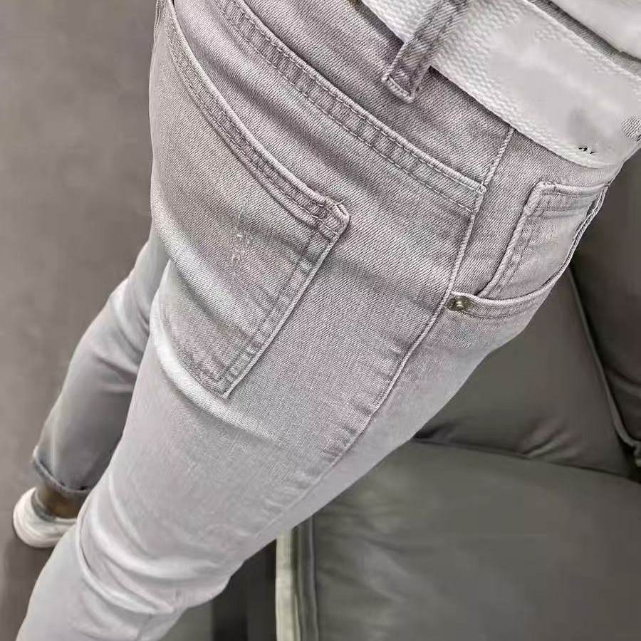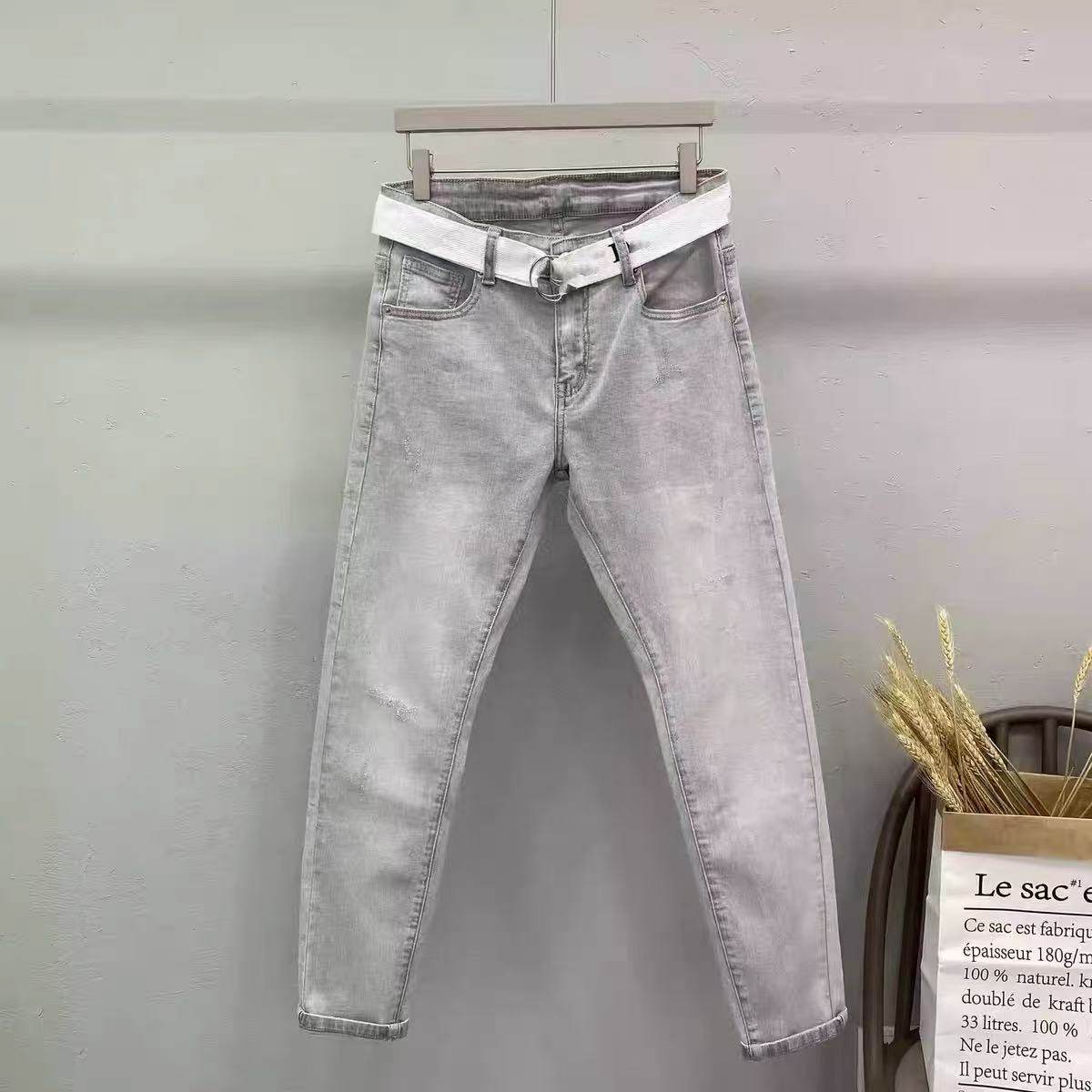 ins浅石灰修身弹力小脚牛仔裤男 潮牌夏薄新韩版休闲社会网红百搭