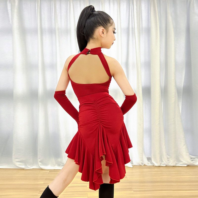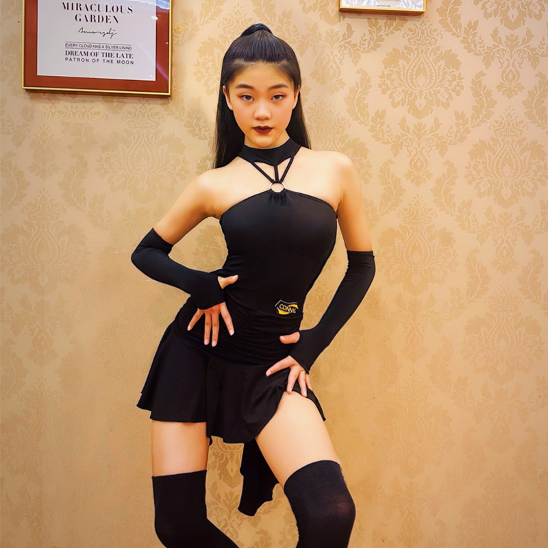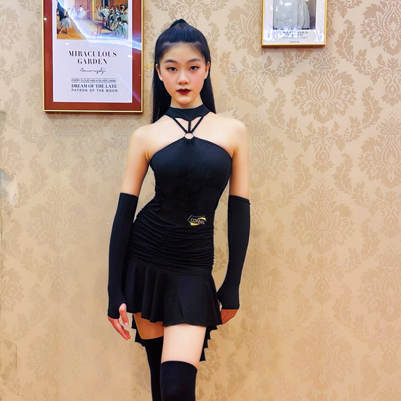 CONNY拉丁舞服女挂脖吊带上衣舞蹈练功裙儿童跳舞套装表演演出服