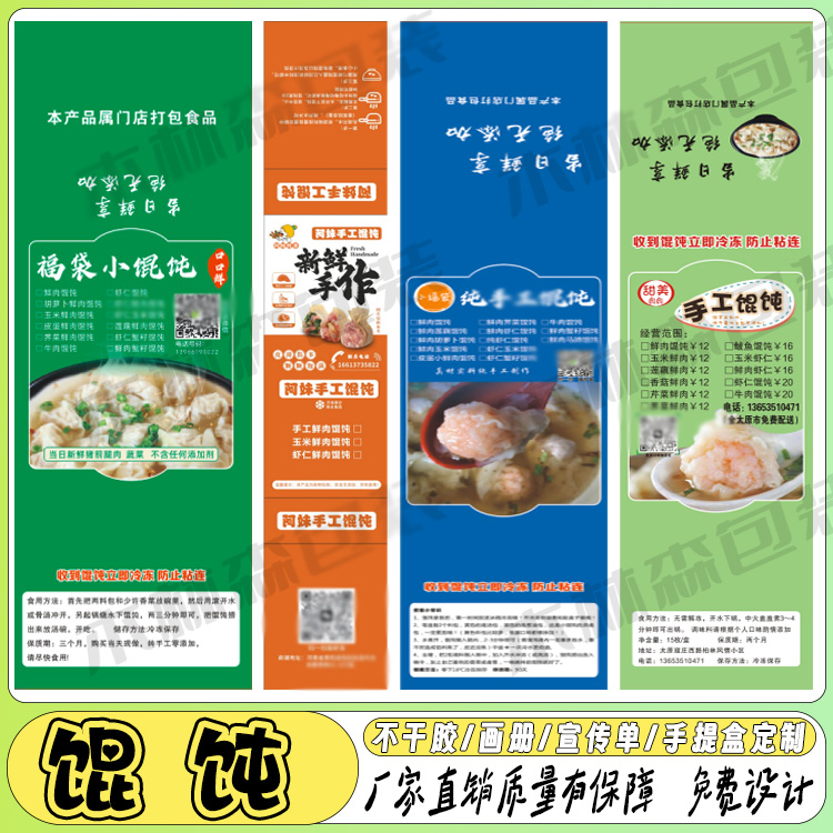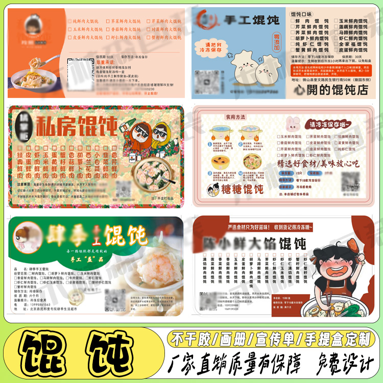 定制馄饨包装贴纸包子蛋糕面包商标小吃零食外卖标签糕点不干胶贴