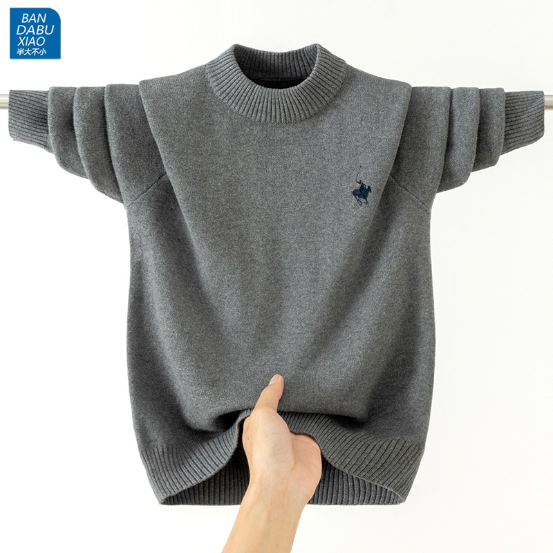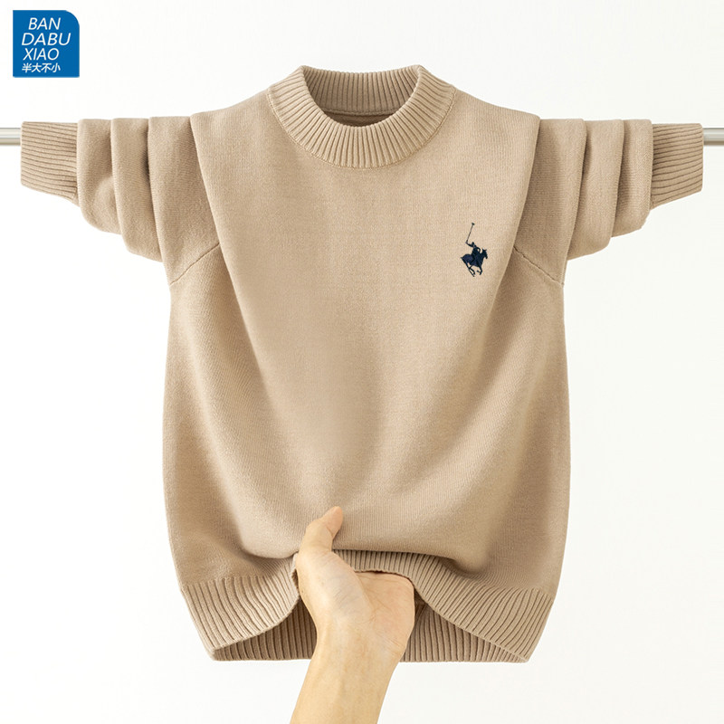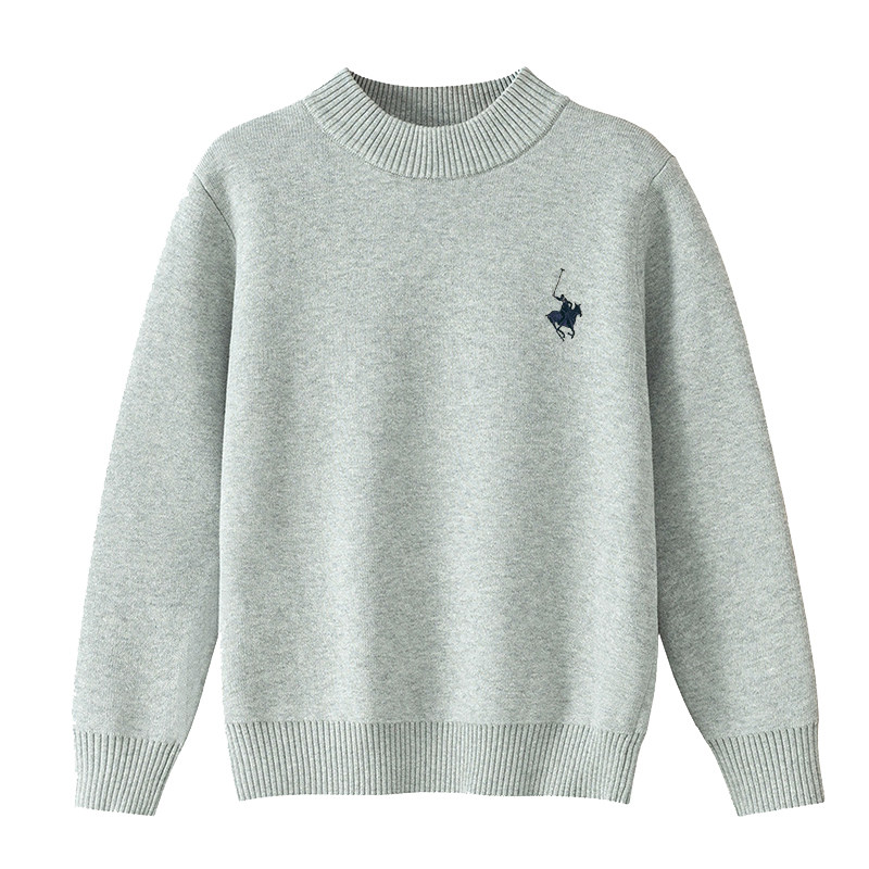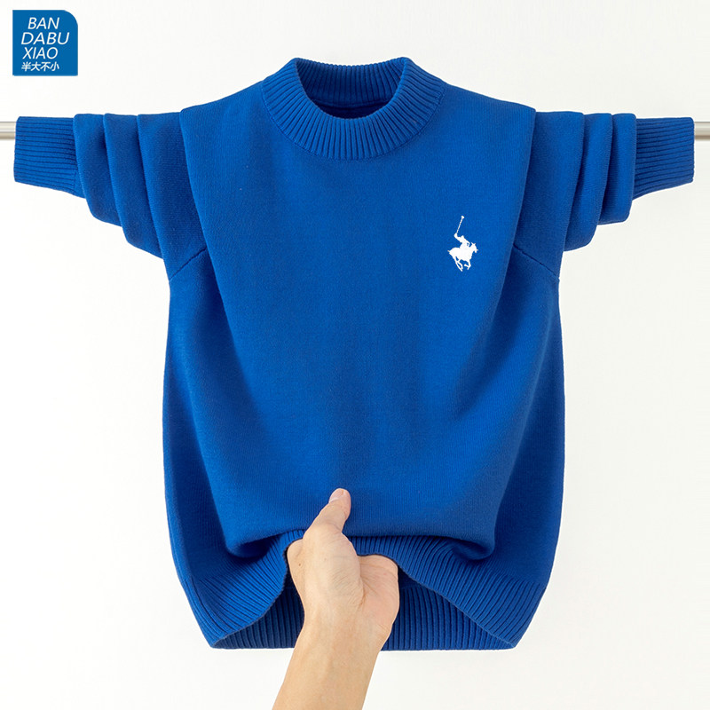 中大童纯棉毛衣男孩子青少年棉线衣中领男童针织衫刺绣打底衫帅气