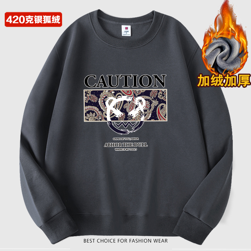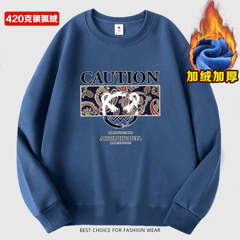 秋冬季男士加绒加厚卫衣圆领套头打底衫上衣保暖长袖T恤男装外套