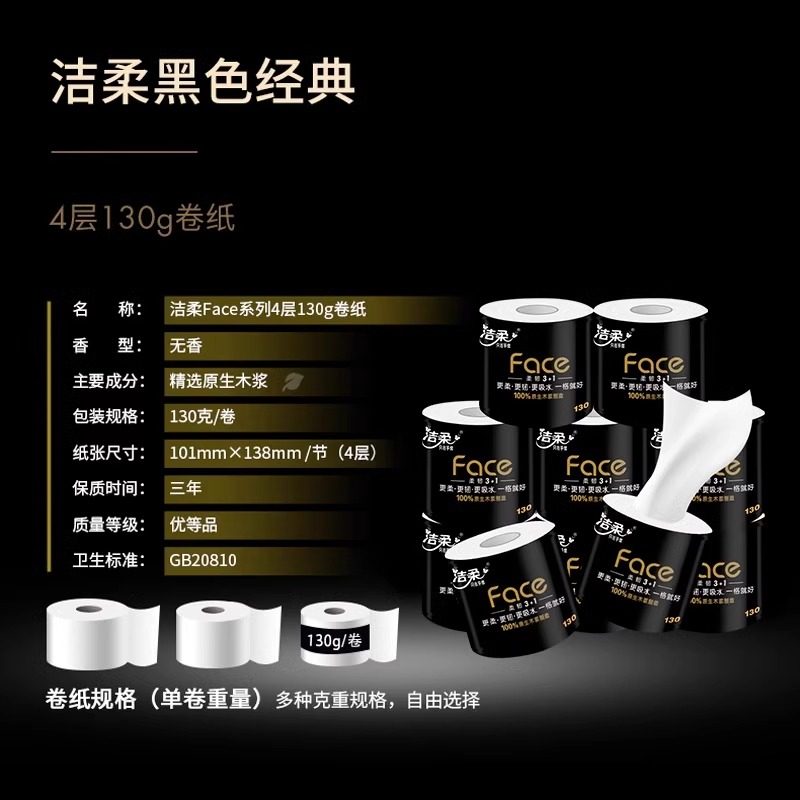 洁柔黑face卷纸130g家用卫生卷筒纸实惠装亲肤加厚柔顺可湿水