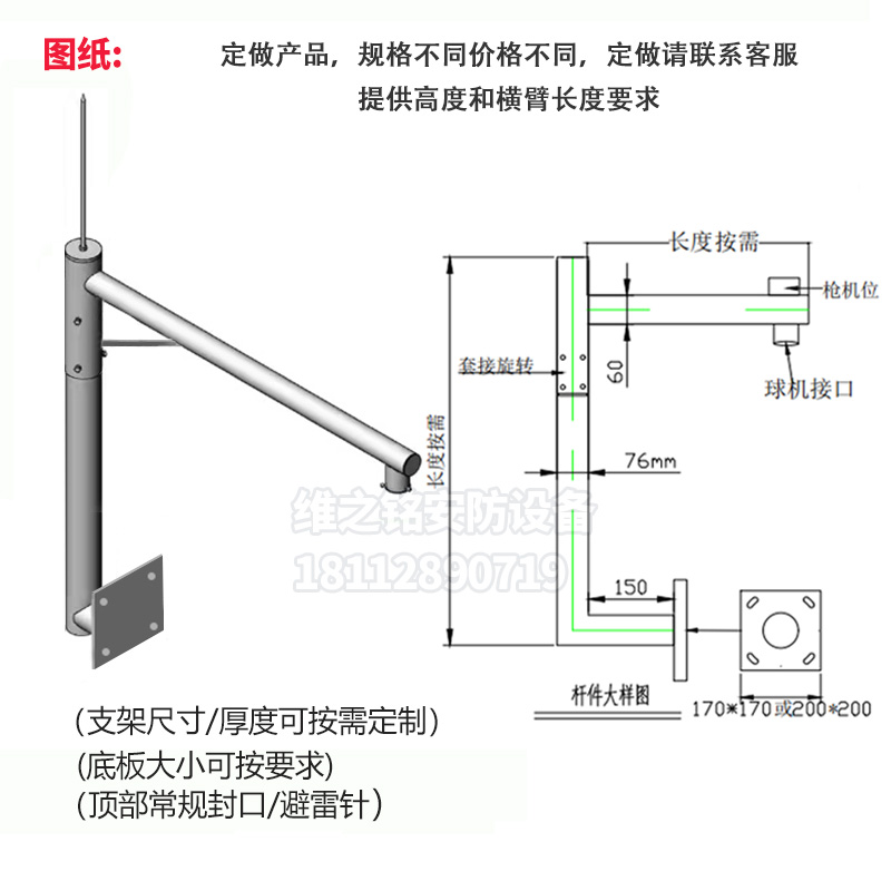监控支架室外旋转L型围墙鹰眼侧壁装枪球机楼顶360度海康摄像头架