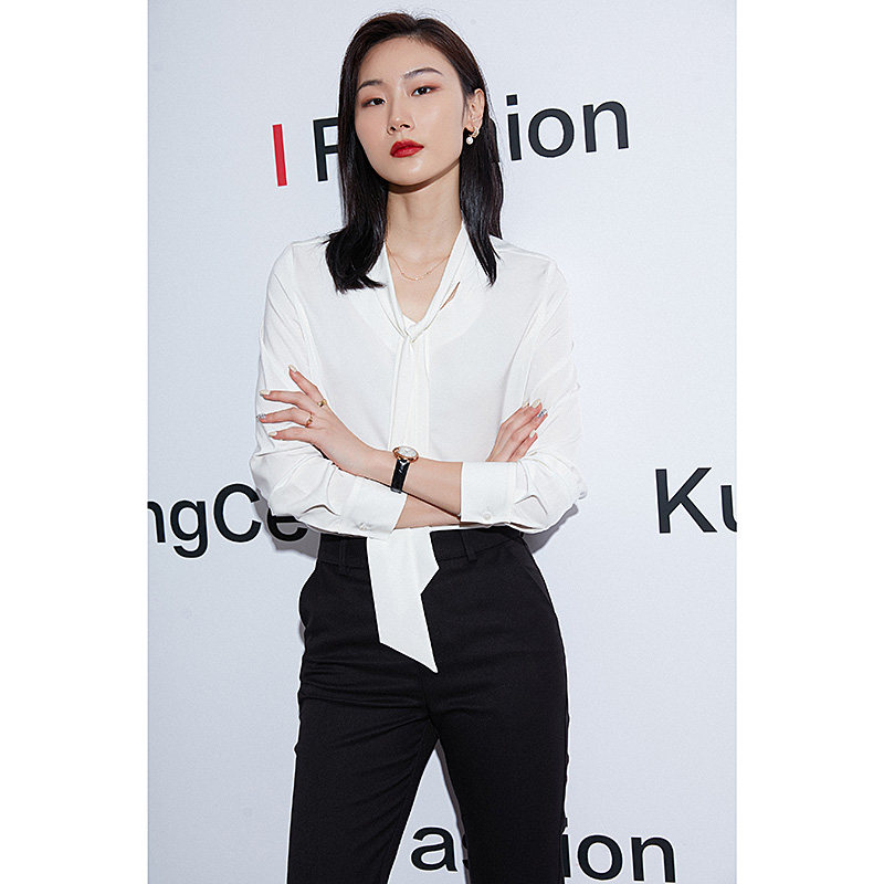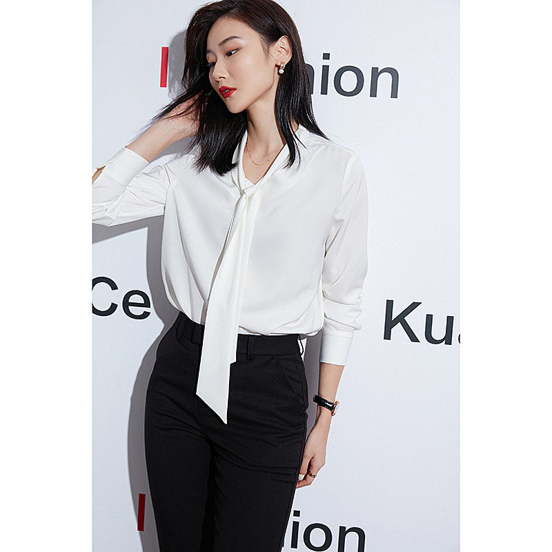 白色衬衫女职业装飘带衬衣秋新款