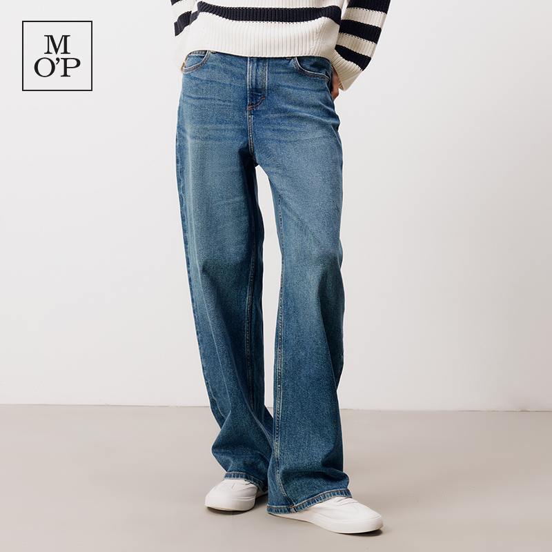 Marc O'Polo/MOP2025春夏新款收腰阔腿水洗宽松直筒牛仔长裤女士