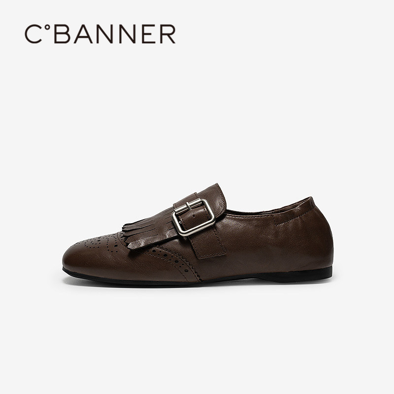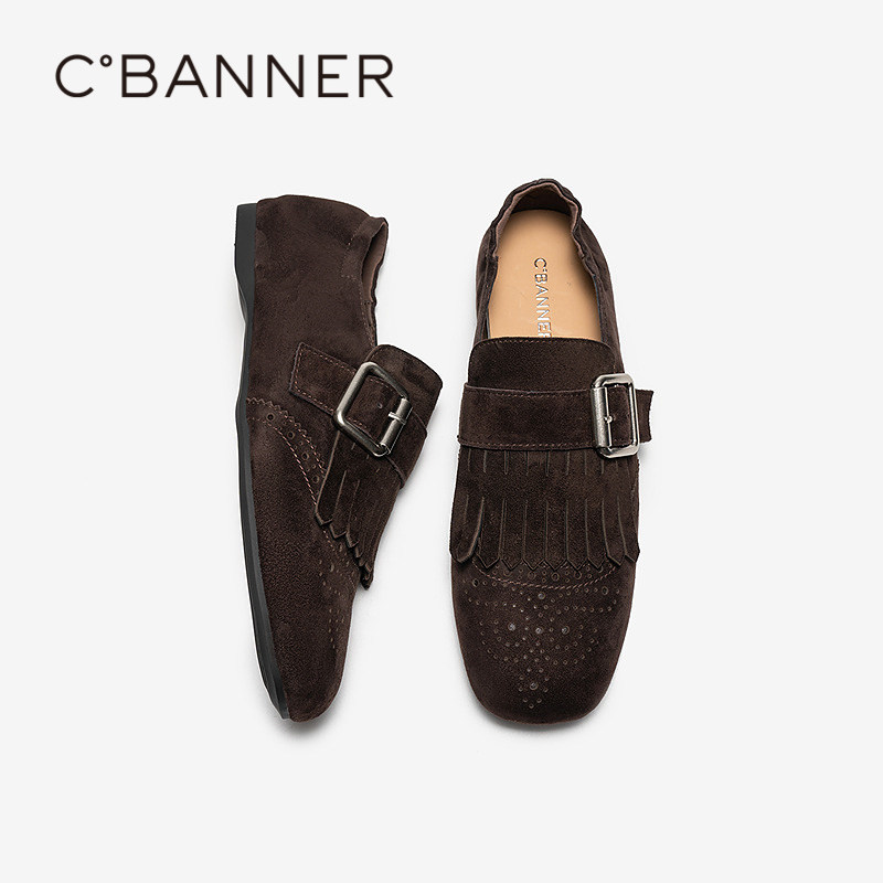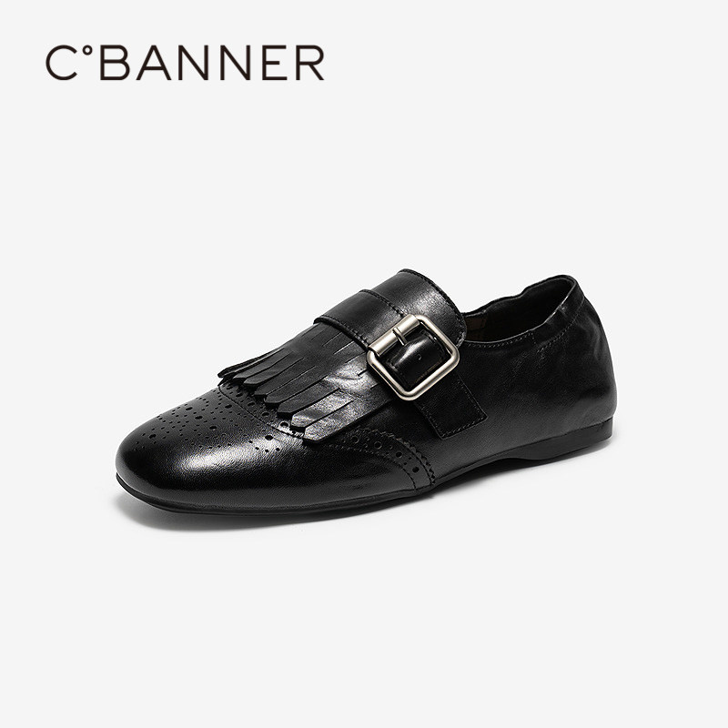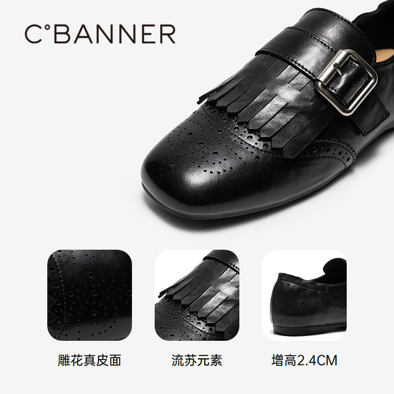 千百度内增高流苏乐福鞋女2026春季新款平底小皮鞋薄底深口单鞋