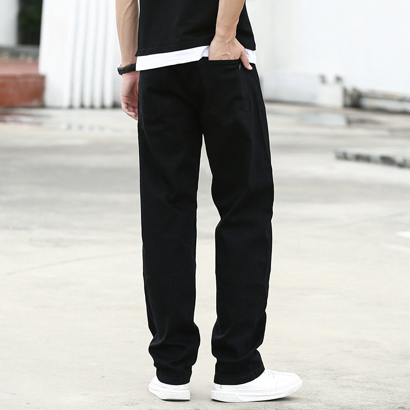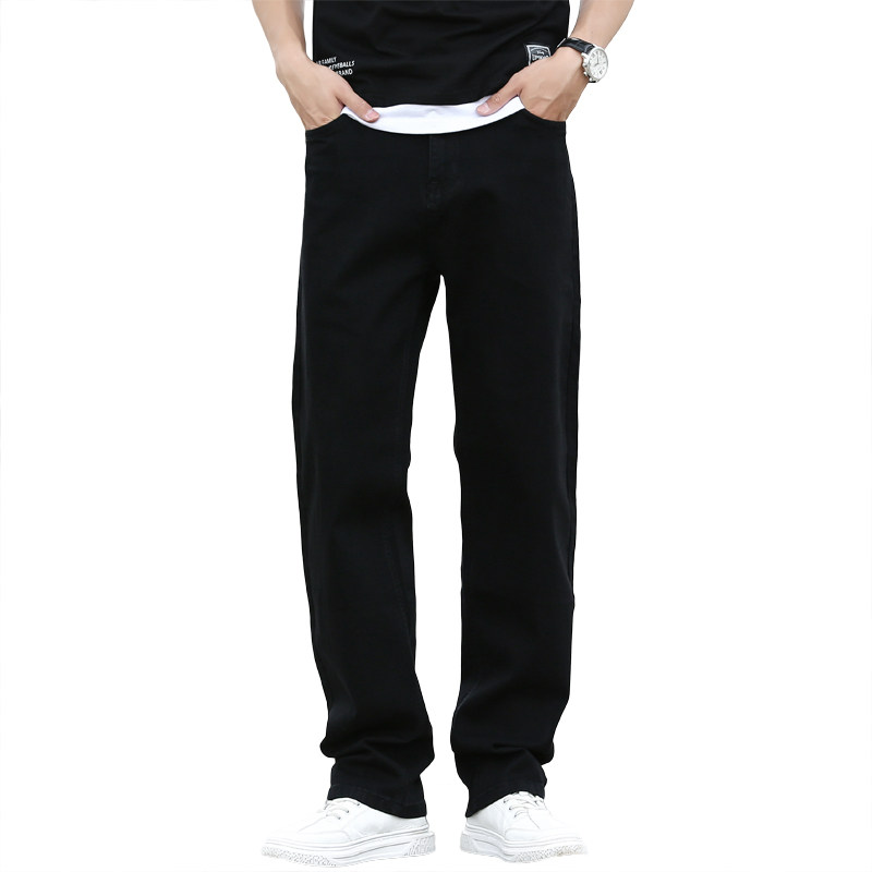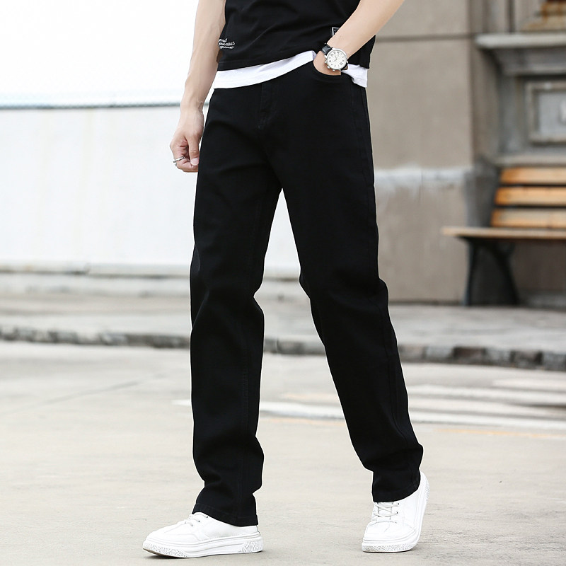 黑色宽松牛仔裤直筒弹力耐磨