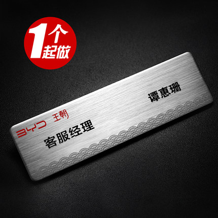 胸牌定做高档不锈钢工牌定制比亚迪王朝网工号牌工作牌胸卡别针式