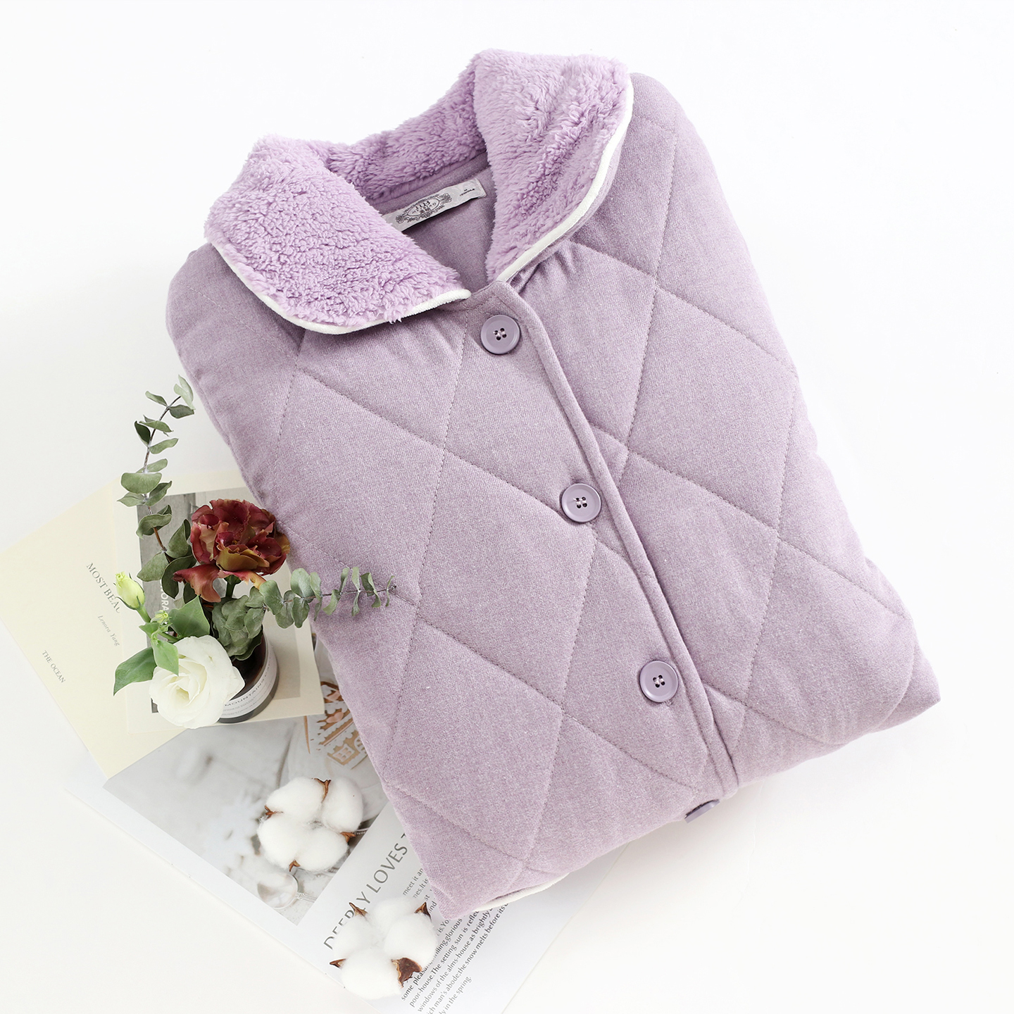 美标三层加厚保暖夹棉纯棉睡袍女秋冬全棉质睡衣甜美可外穿家居服