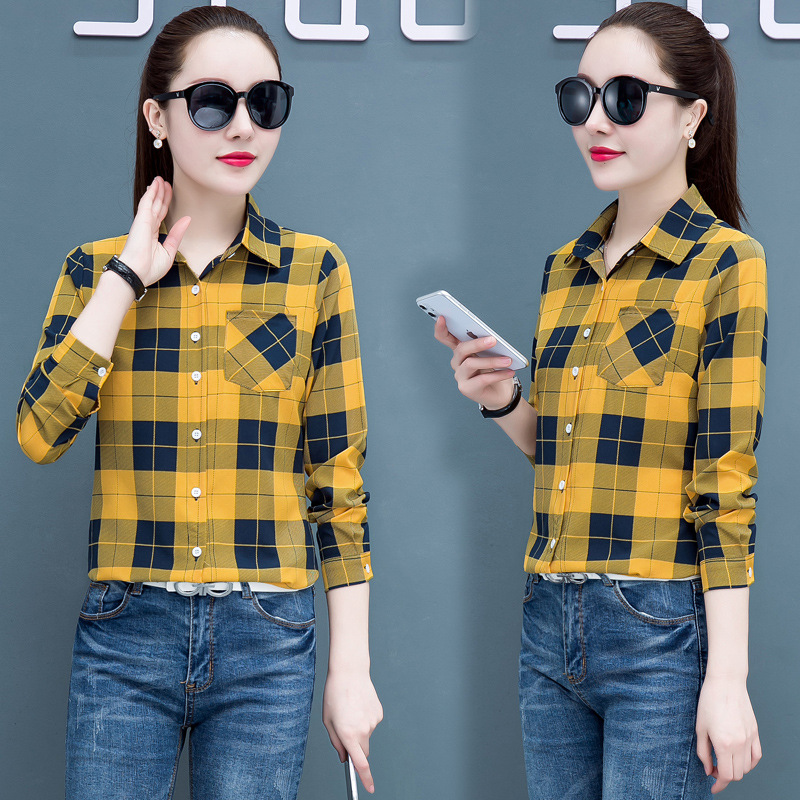 格子外套衬衫女长袖春秋新款打底衫女士韩版休闲工装宽松单穿