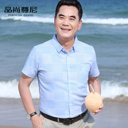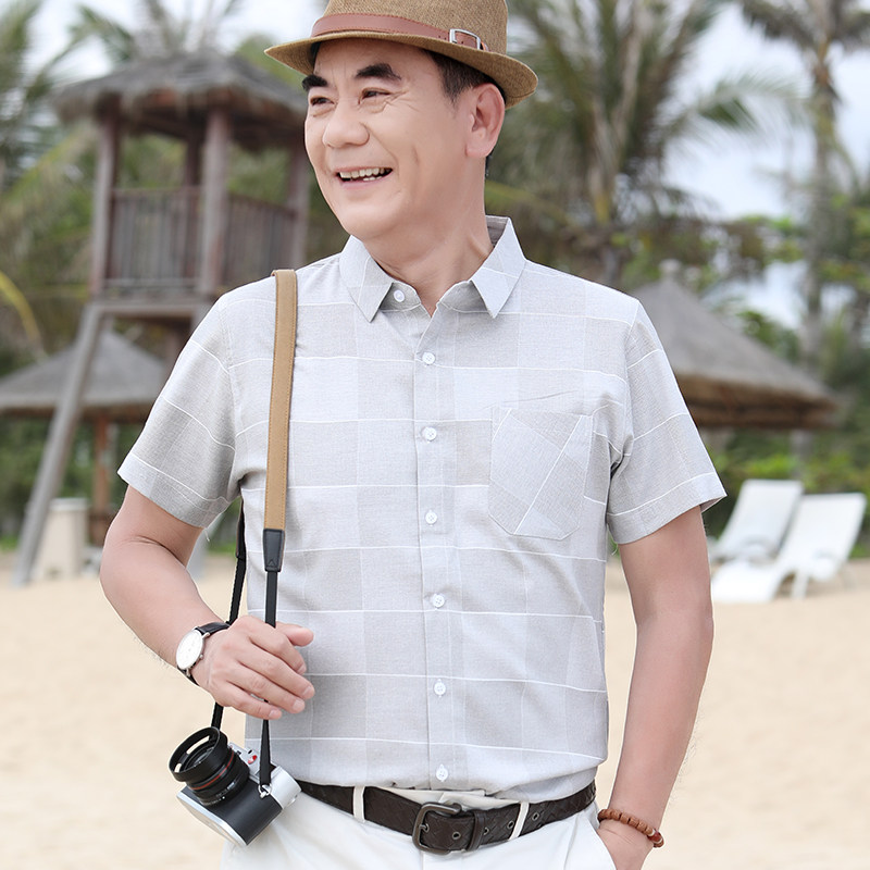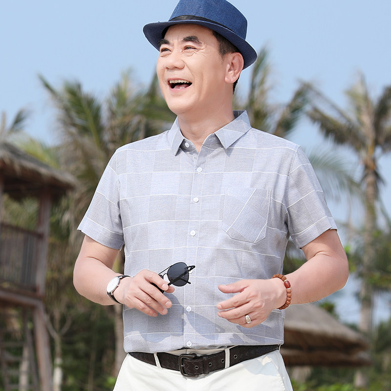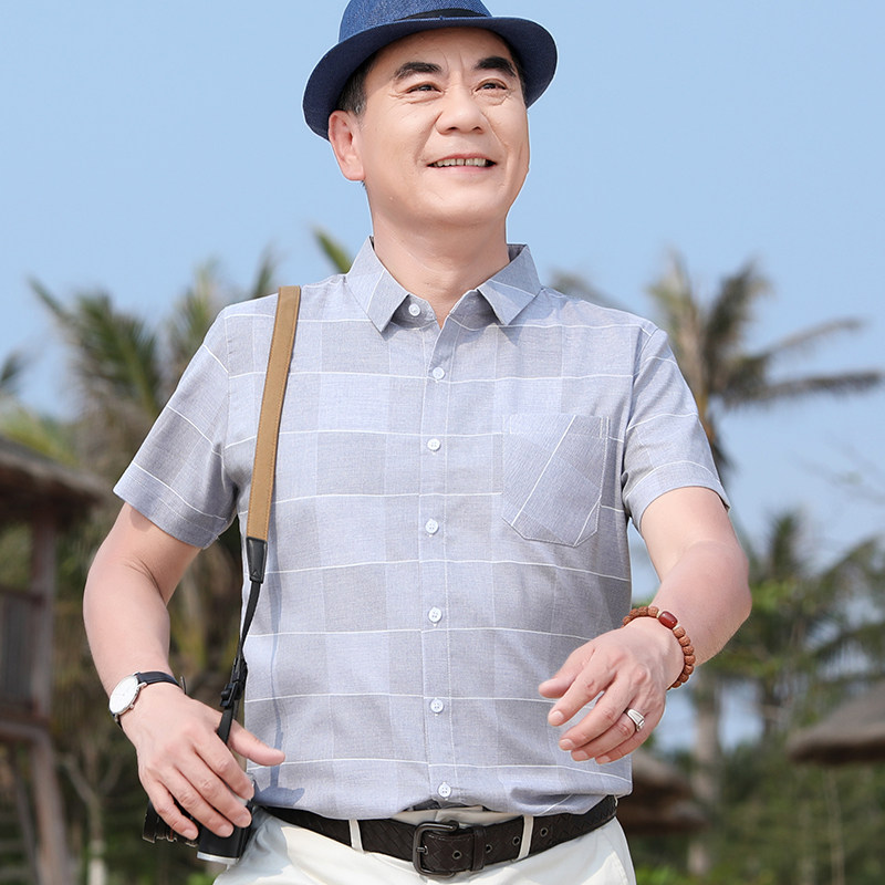 男士衬衫短袖休闲上衣日系格子商务宽松衬衣半袖夏季中老年爸爸装