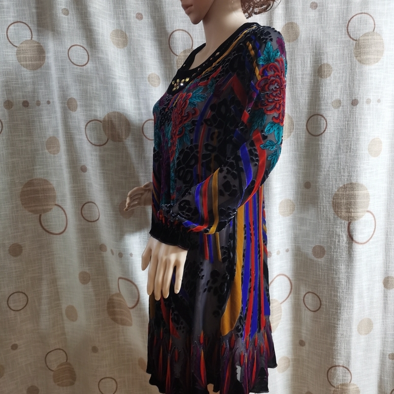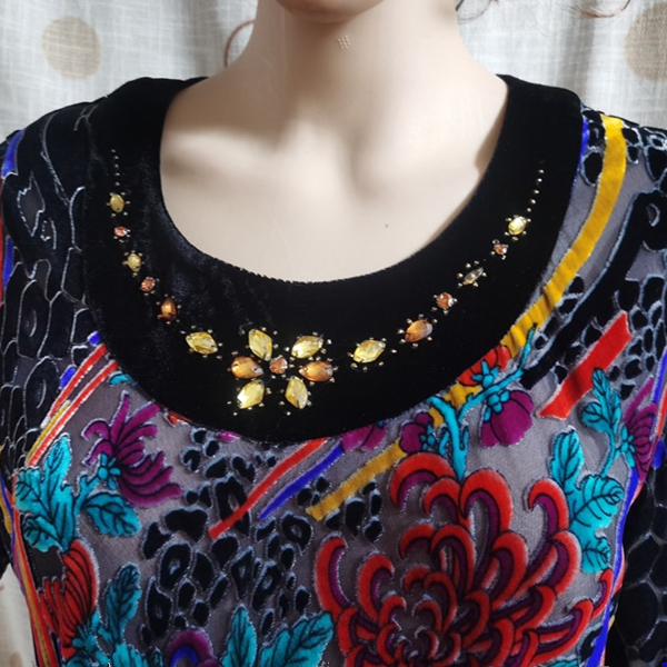 2025真丝绒圆领长袖连衣裙女裙烂花绒女裙钉珠刺绣斜裁显瘦2273