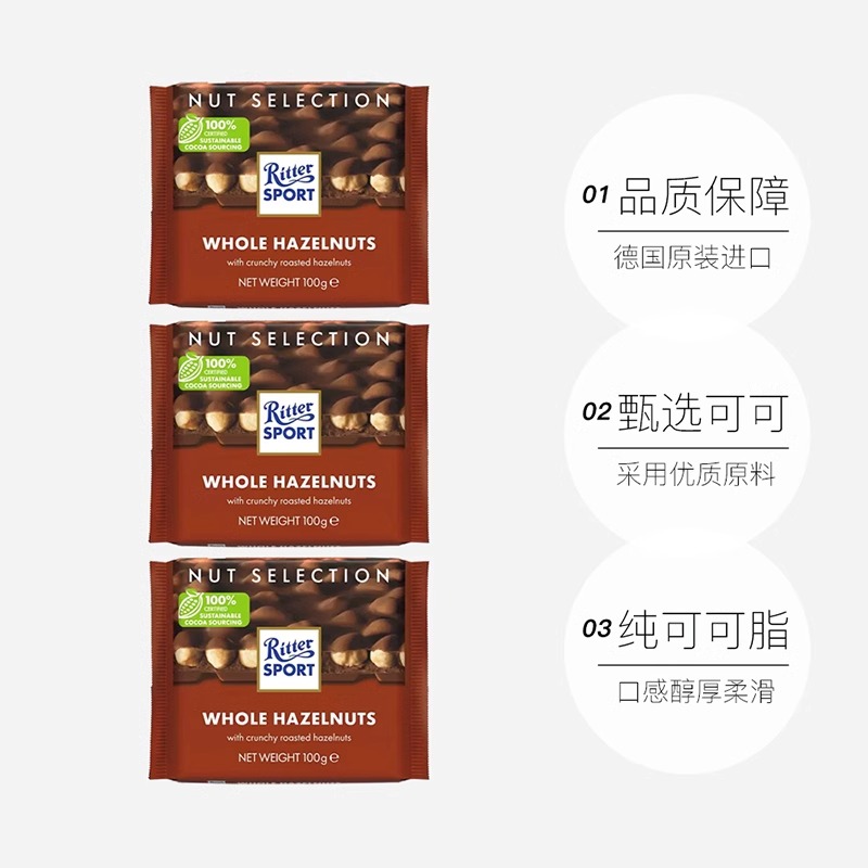 RitterSport瑞特滋德国进口黑/白巧克力排块全口味零食瑞特斯波德
