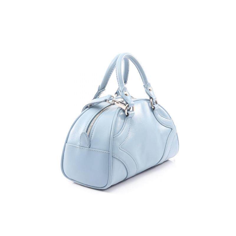 中古Prada普拉达女包A级95新bowling bag保龄球包牛皮斜挎包蓝色