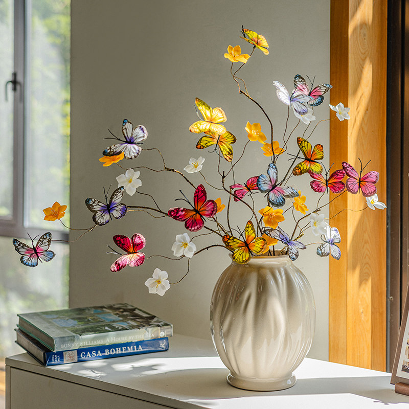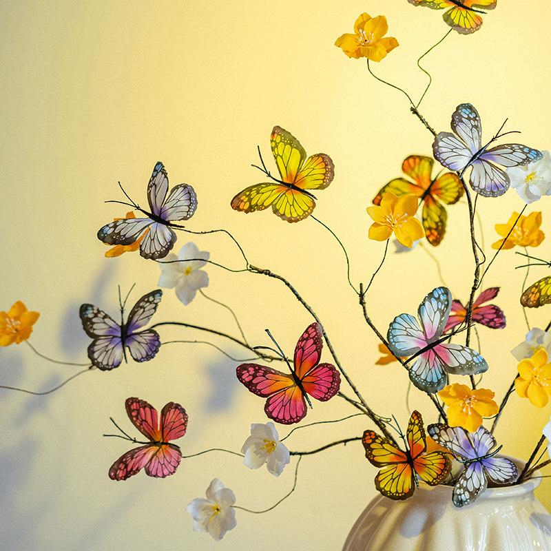 仿真花假花蝴蝶干枝摆件客厅餐桌花摆设场景布置花艺干花拍照道具