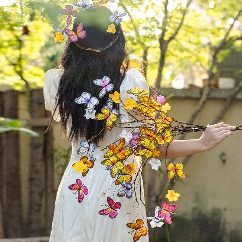 仿真蝴蝶假花干枝装饰摆件拍照