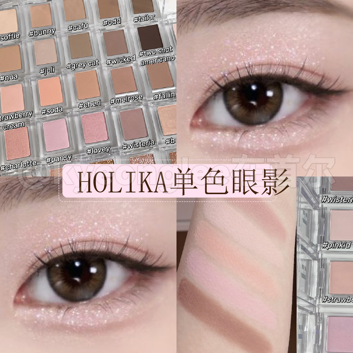 韩国holika惑丽客单色眼影小詹同款试色珠光哑光打底卧蚕腮红高光