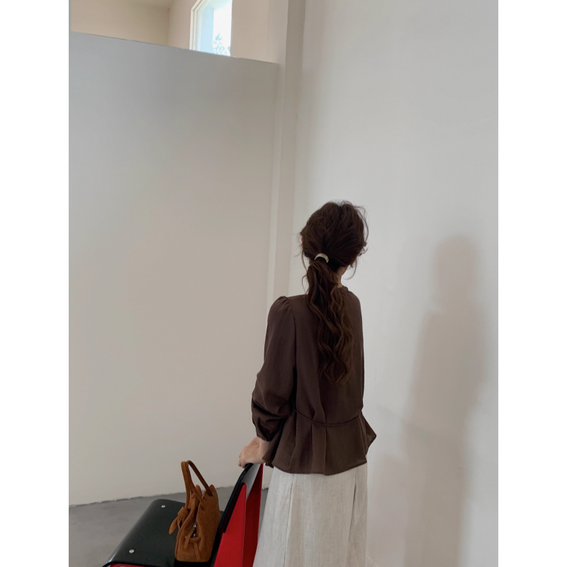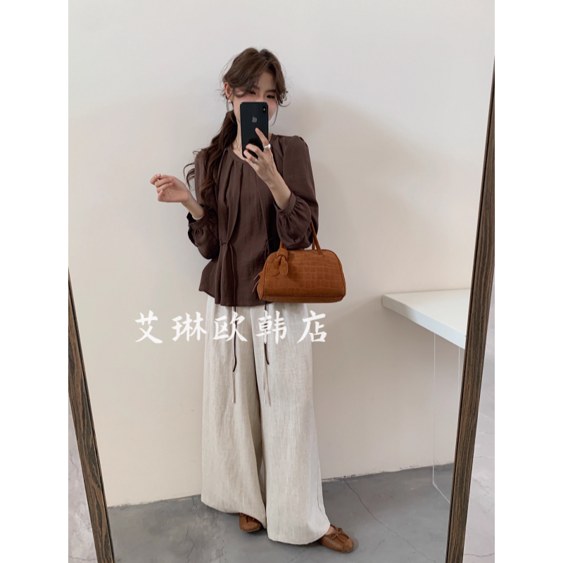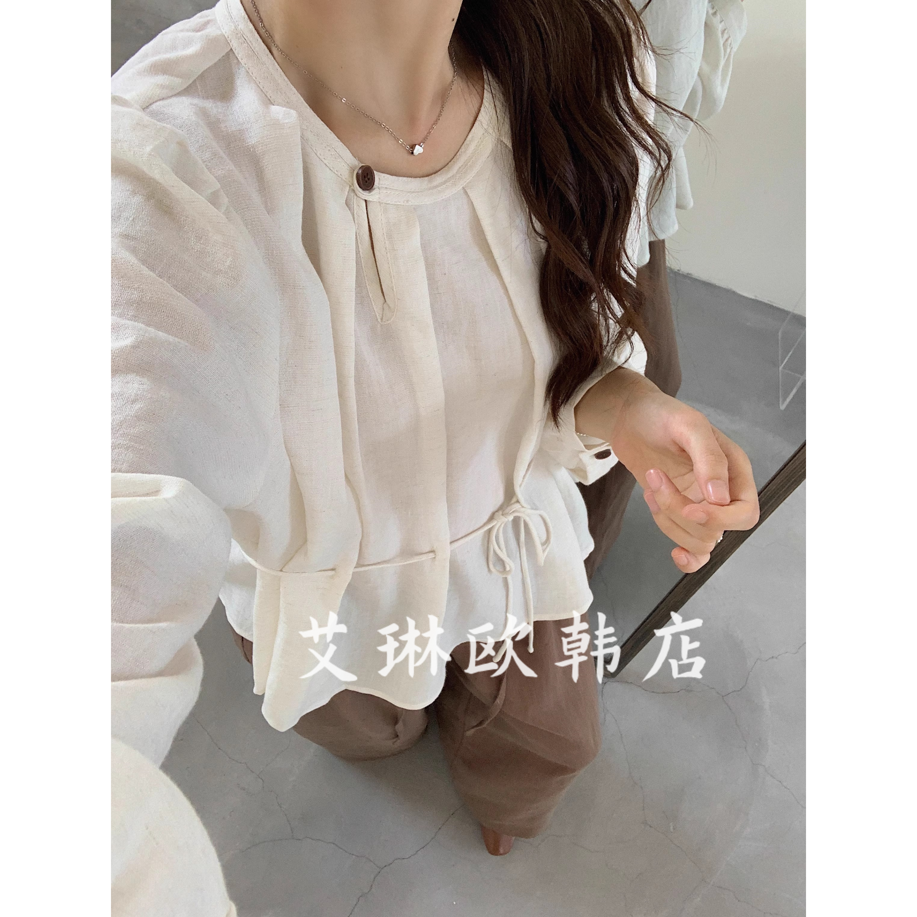8.27~土布鱼6988秋季新款圆领系带收腰天丝亚麻百搭衬衫上衣女