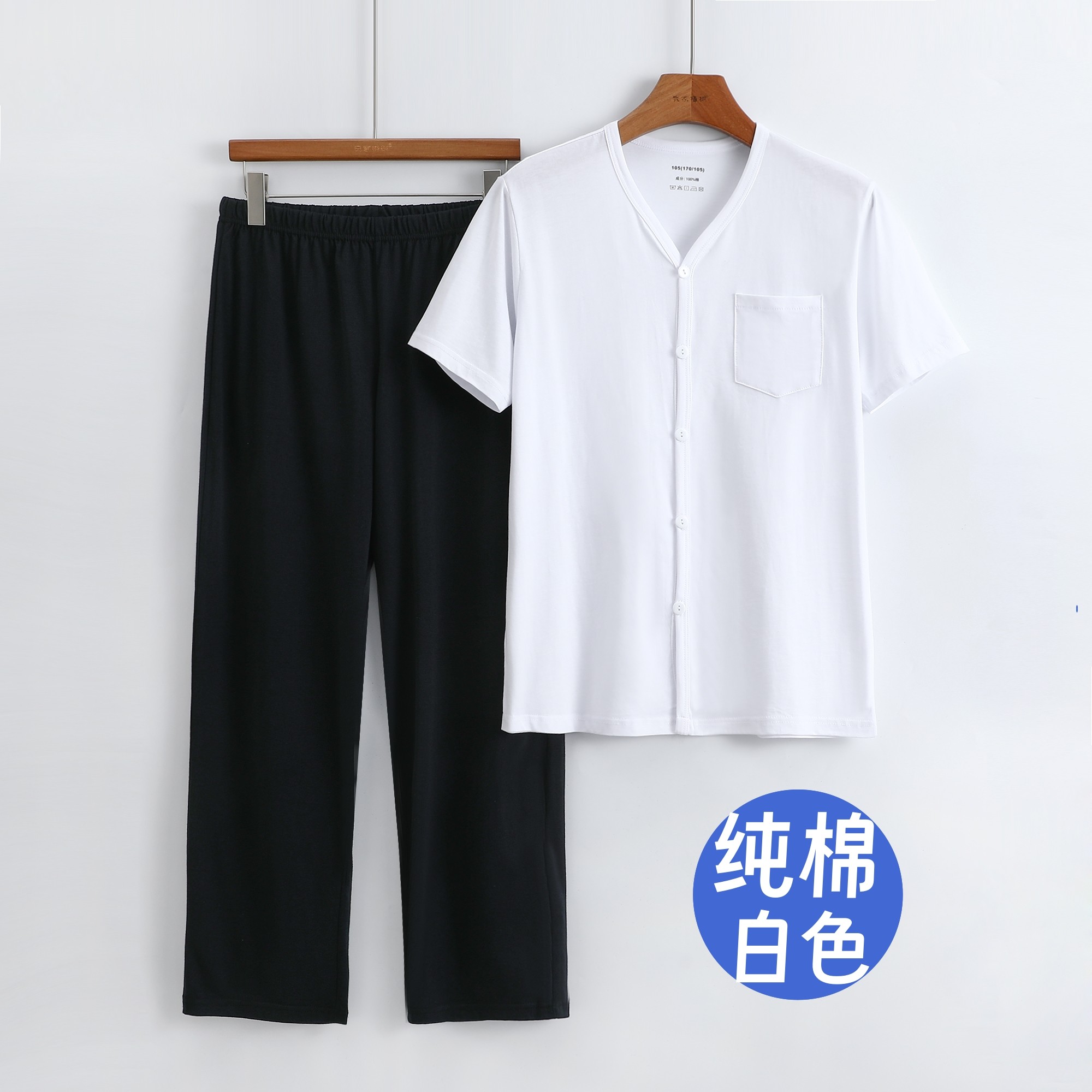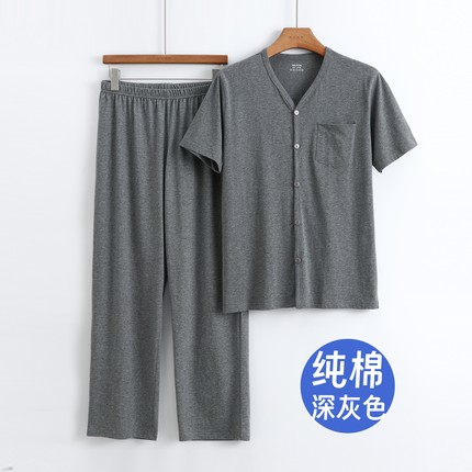 纯棉短袖开衫直筒裤爸爸家居服
