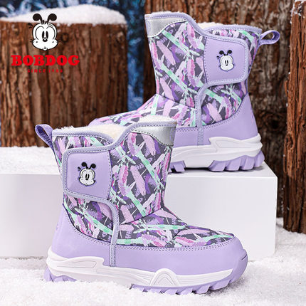 巴布豆女童雪地靴2025冬季新款防水加绒加厚保暖女孩棉鞋儿童靴子