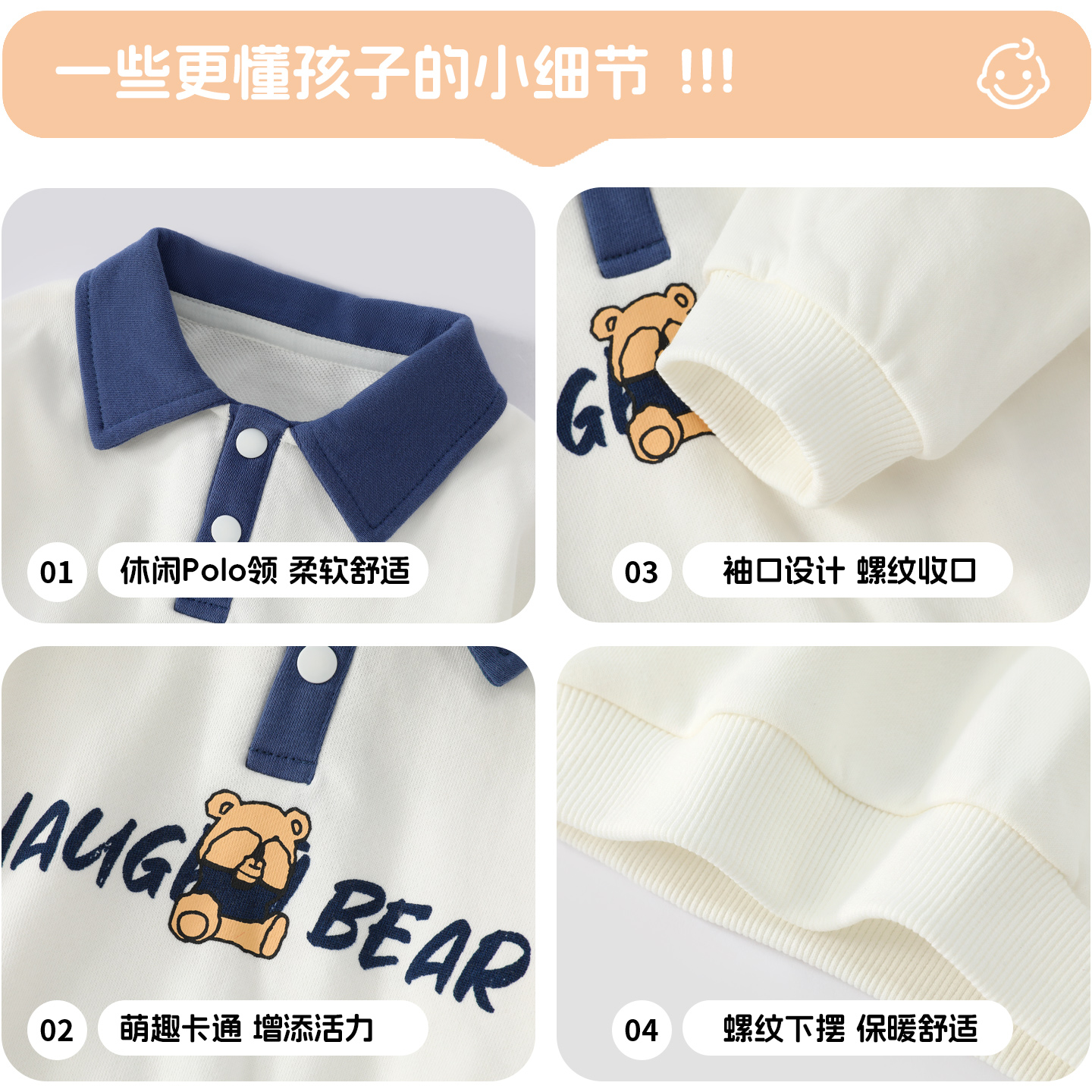 男童卫衣落肩2025新款儿童套头衫撞色宝宝衣服白色卡通小孩上衣潮