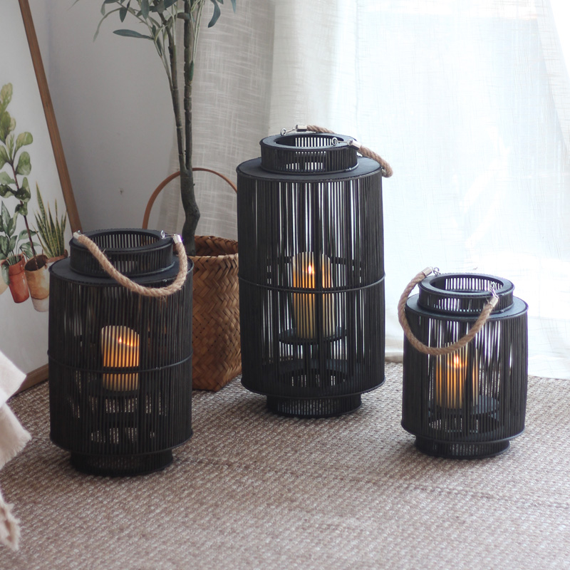 藤编风灯手提烛台摆件酒店民宿样板间阳台装饰品灯笼北欧简约日式