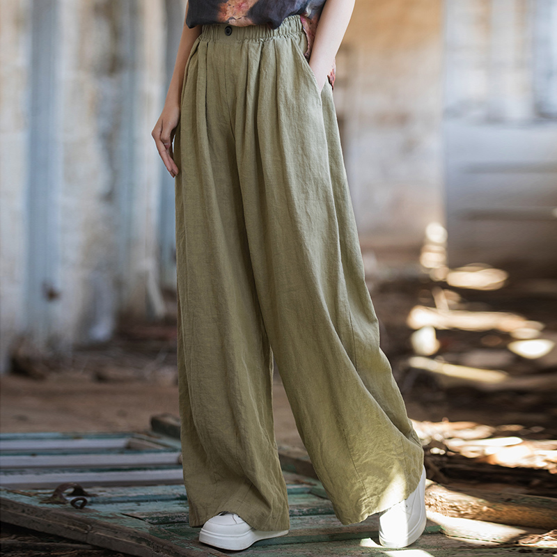 亚麻阔腿裤女春秋新款长裤时尚宽松棉麻复古女装薄款高腰直筒裤