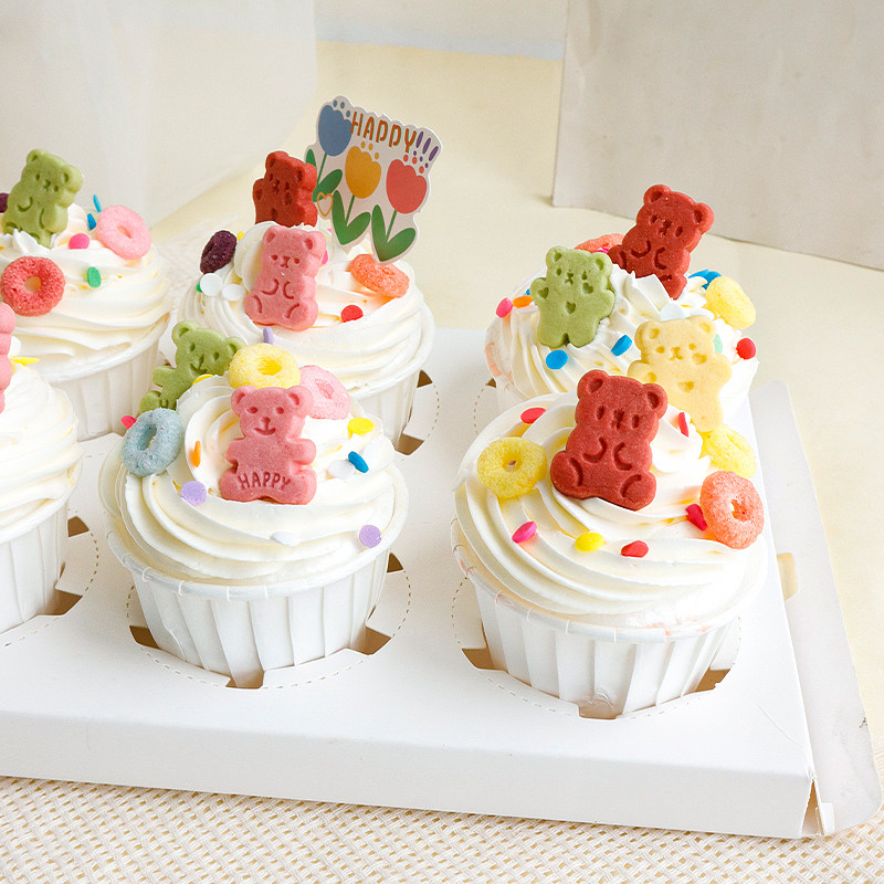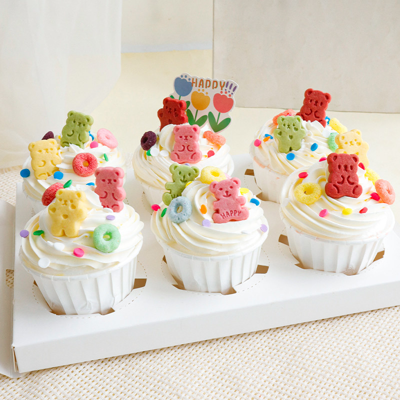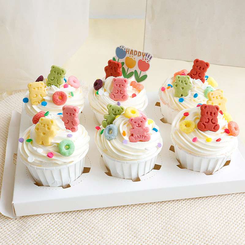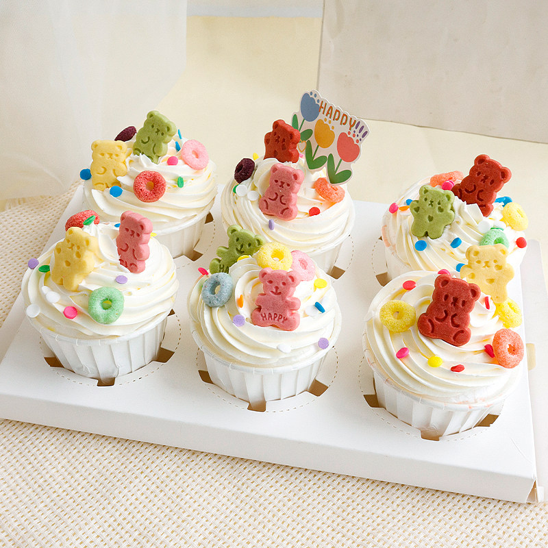 儿童生日纸杯蛋糕装饰彩色小熊饼干动物摆件纸质插旗甜品烘焙点缀