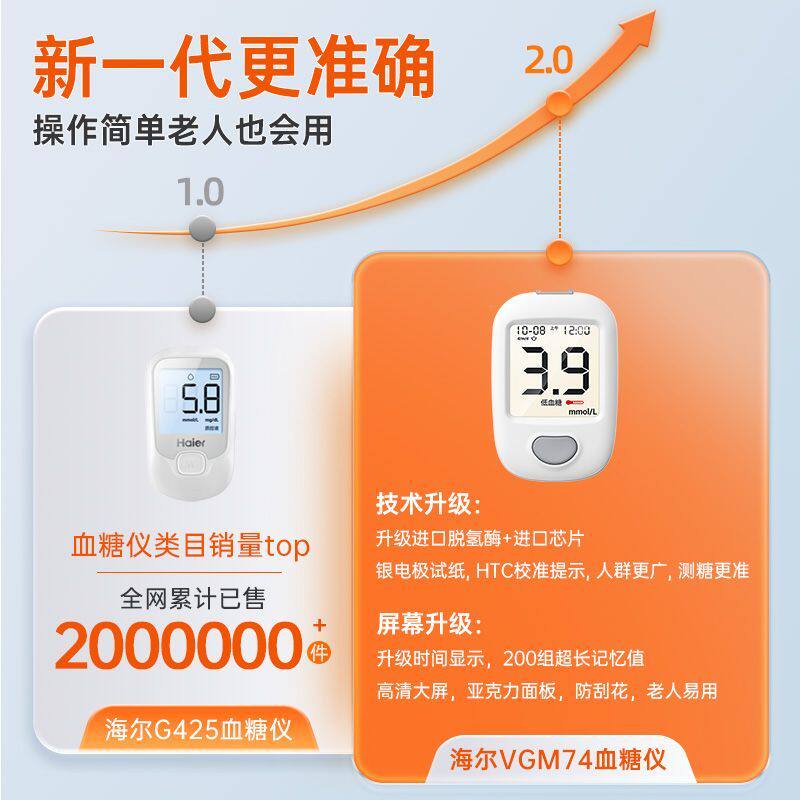 海尔VGM74血糖测试仪家用试纸血糖仪测血糖仪器家用全自动免调码