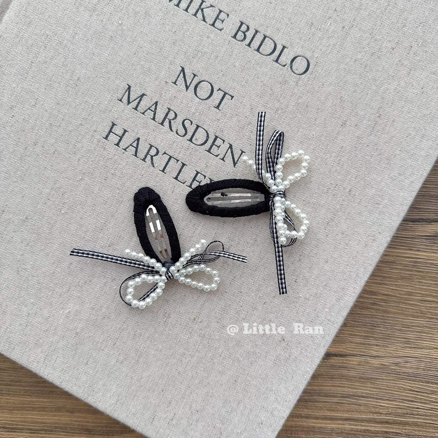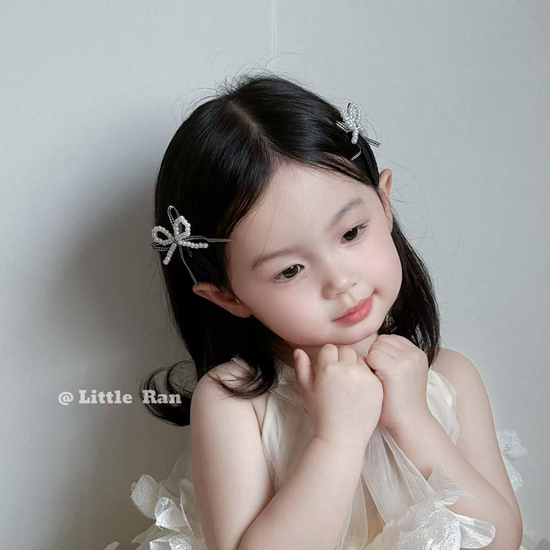 Little Ran儿童珍珠发饰韩版简约蝴蝶结发夹女童甜美可爱宝宝头饰
