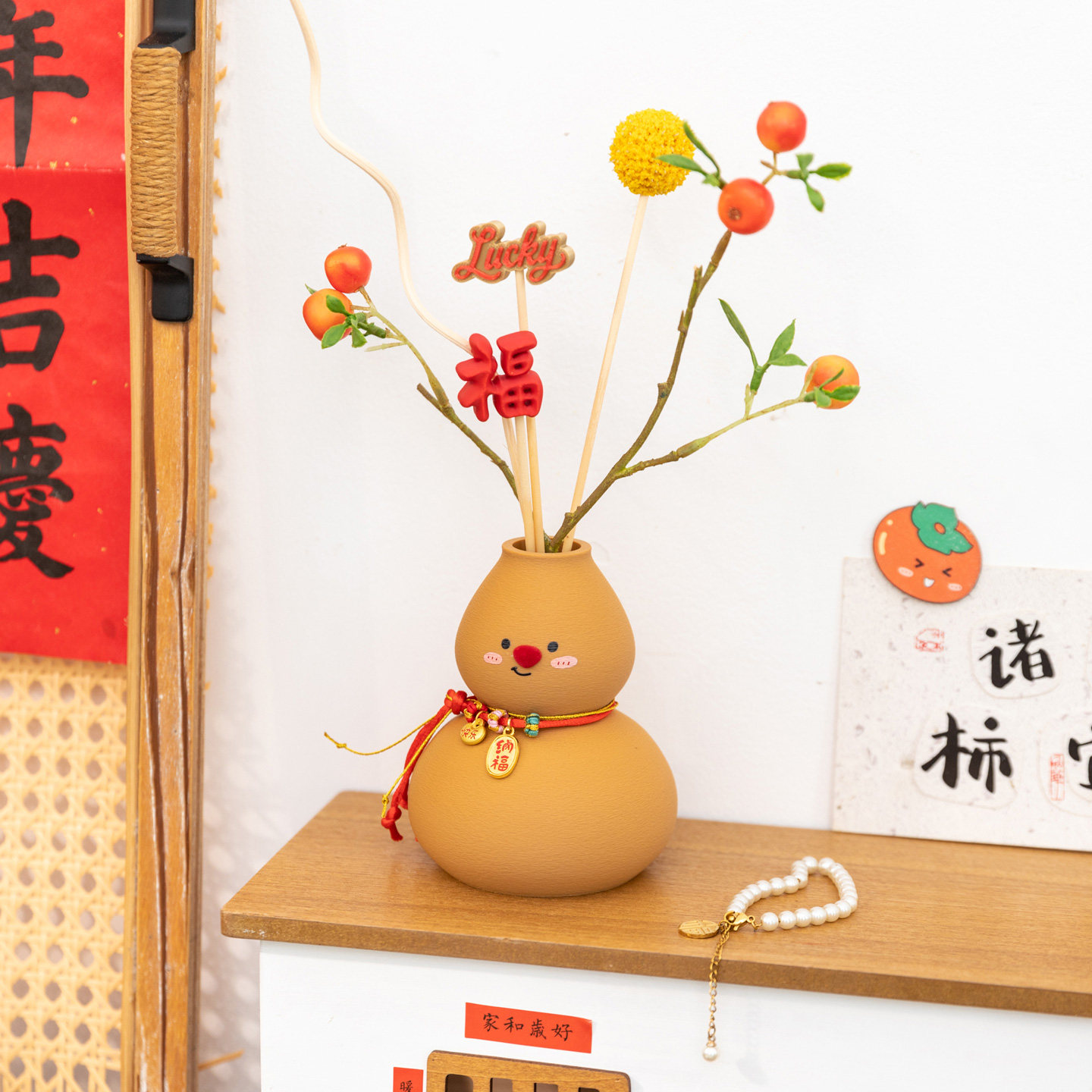 阿楹 可爱艺术春节福好运吉祥物小摆件电视餐边柜香薰乔迁仿真花