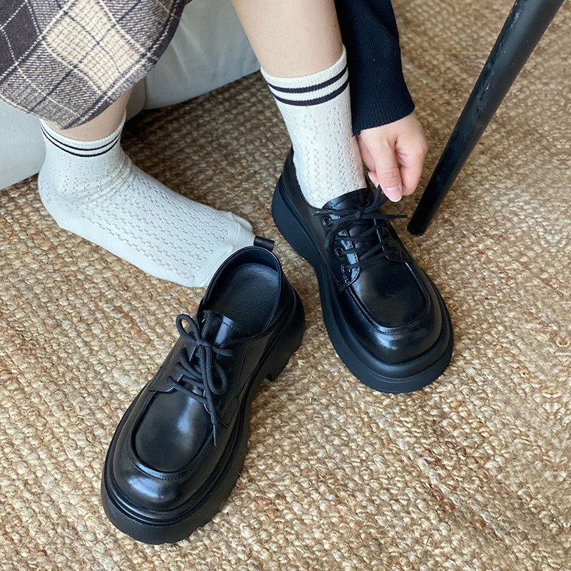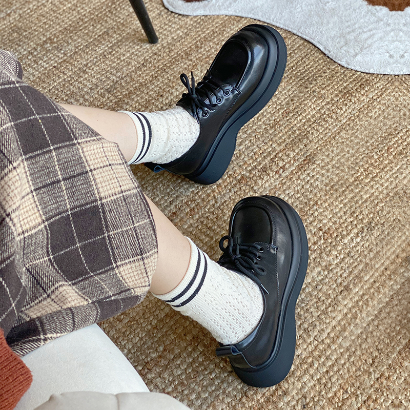 喵唔的天空2025年新款学院风厚底小皮鞋女百搭休闲系带加绒单鞋