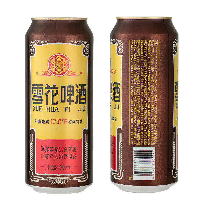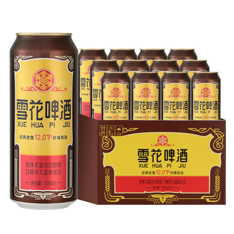 雪花啤酒经典老雪500ml*12听经典醇厚新年送礼